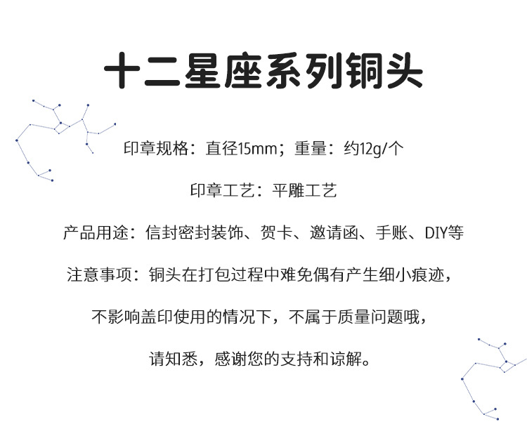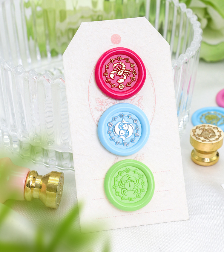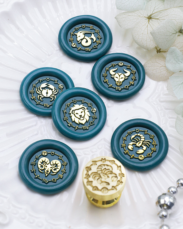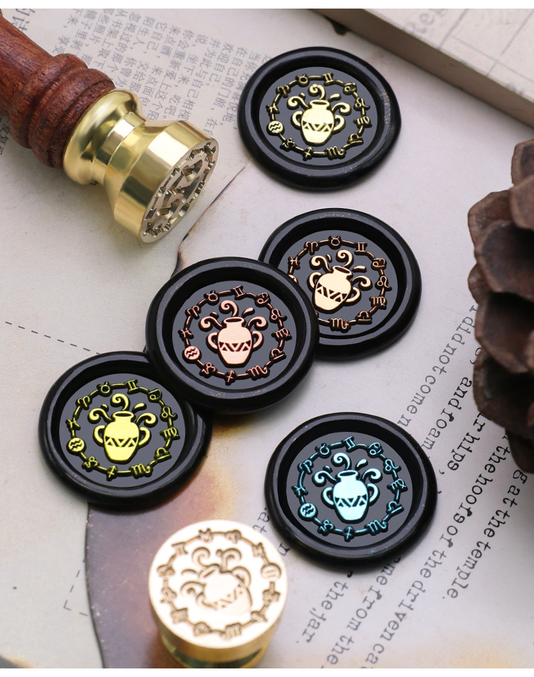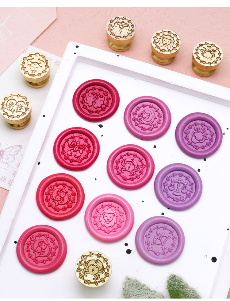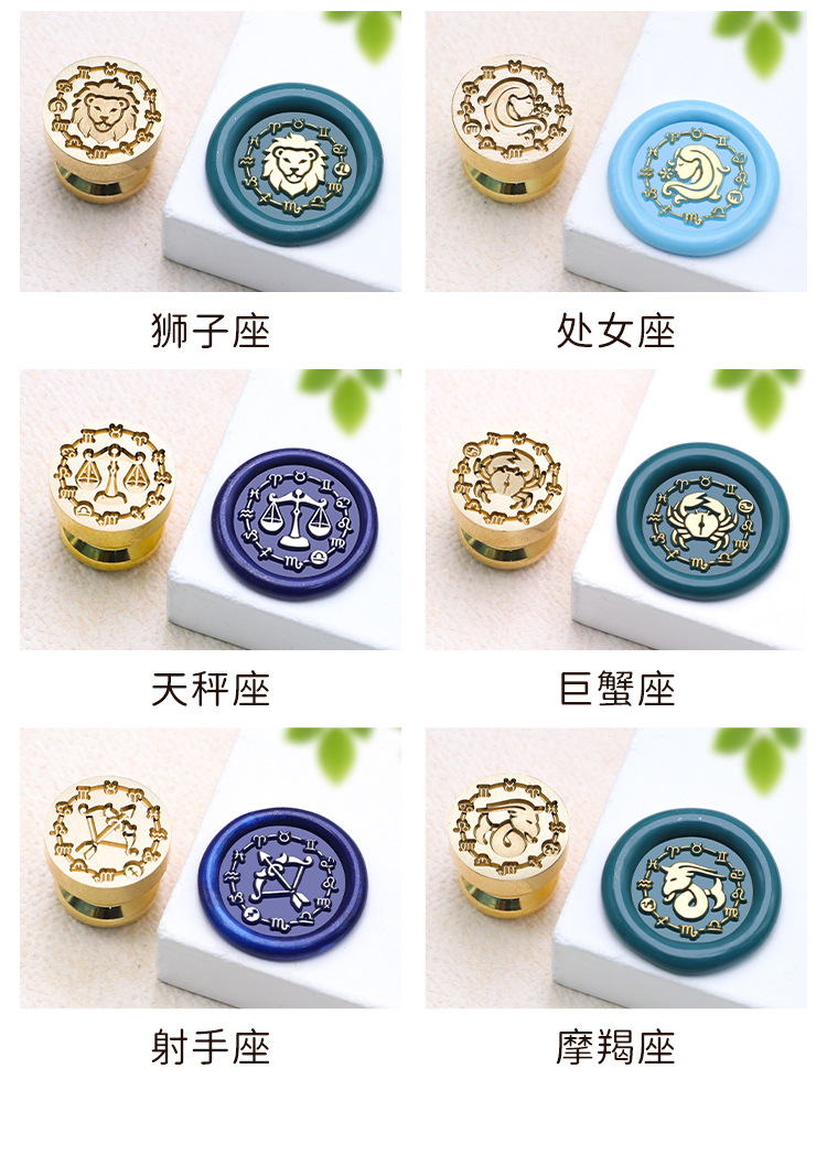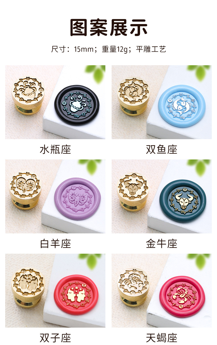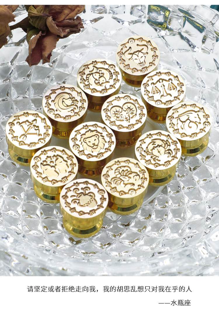 새로운 래커 씰 헤드 12 별자리 시리즈 15mm 전갈 자리 물고기 천칭 암 래커 구리 머리 조각스토어 가기
