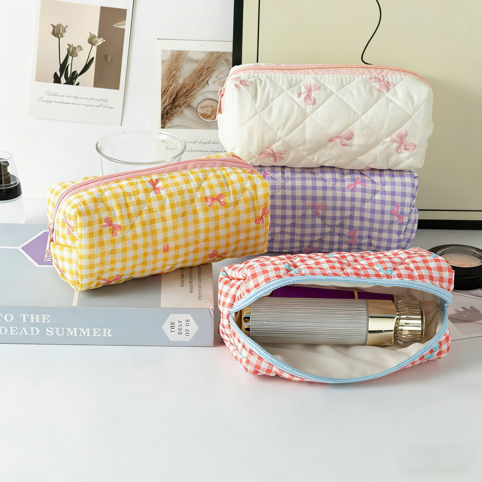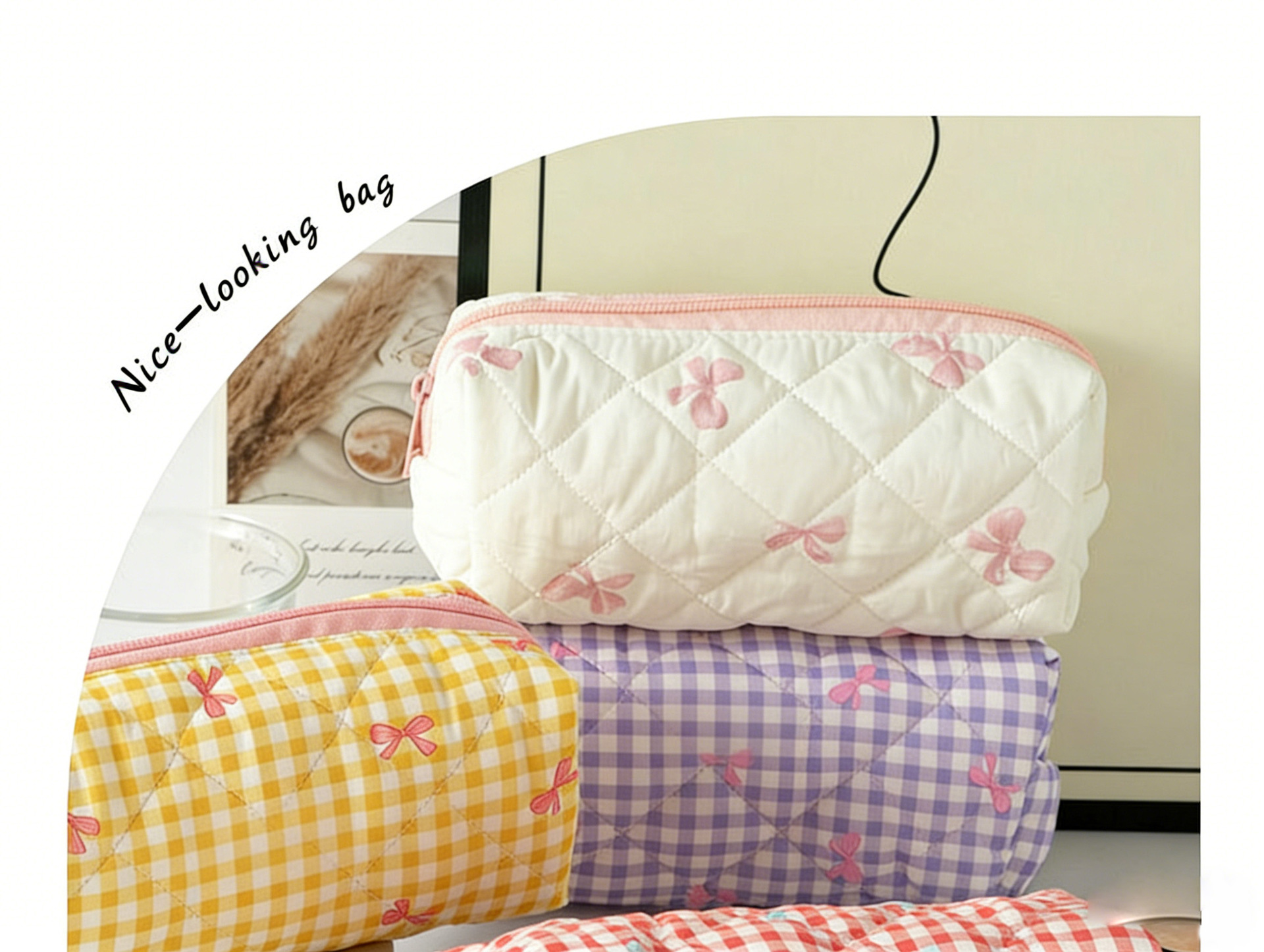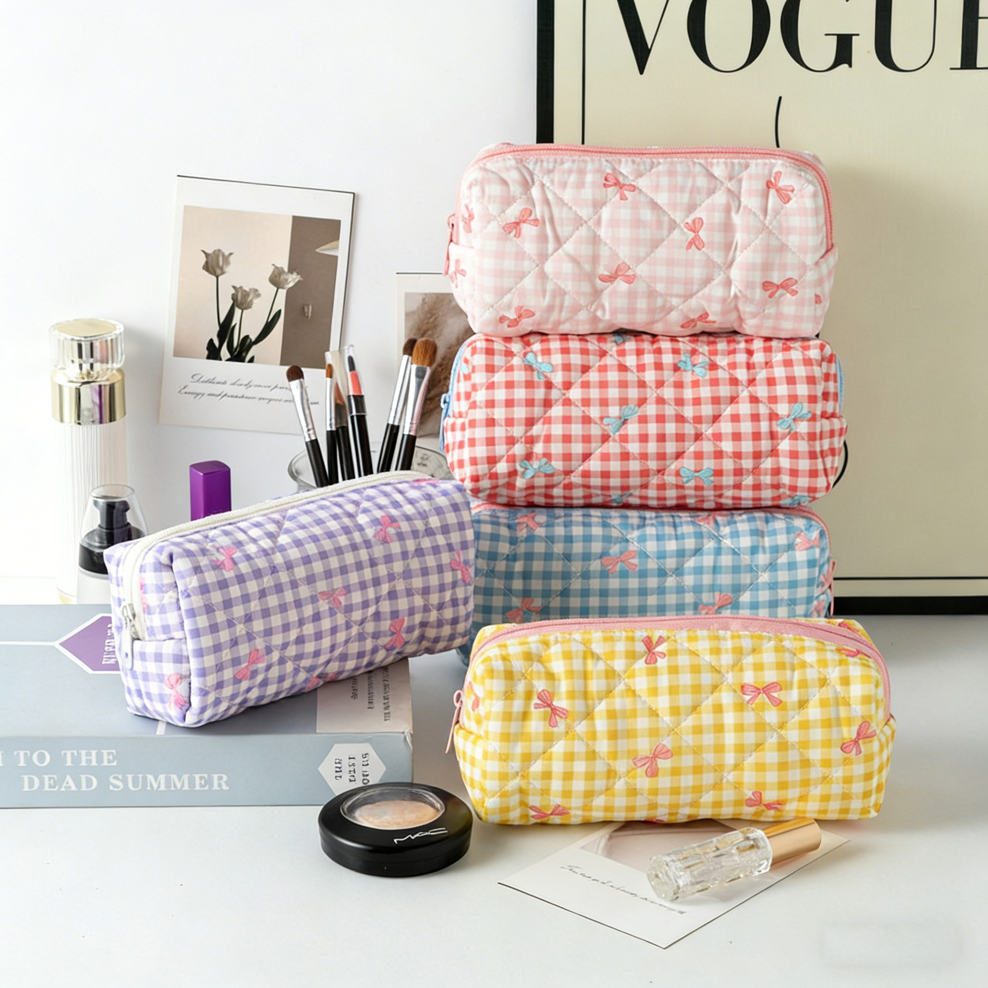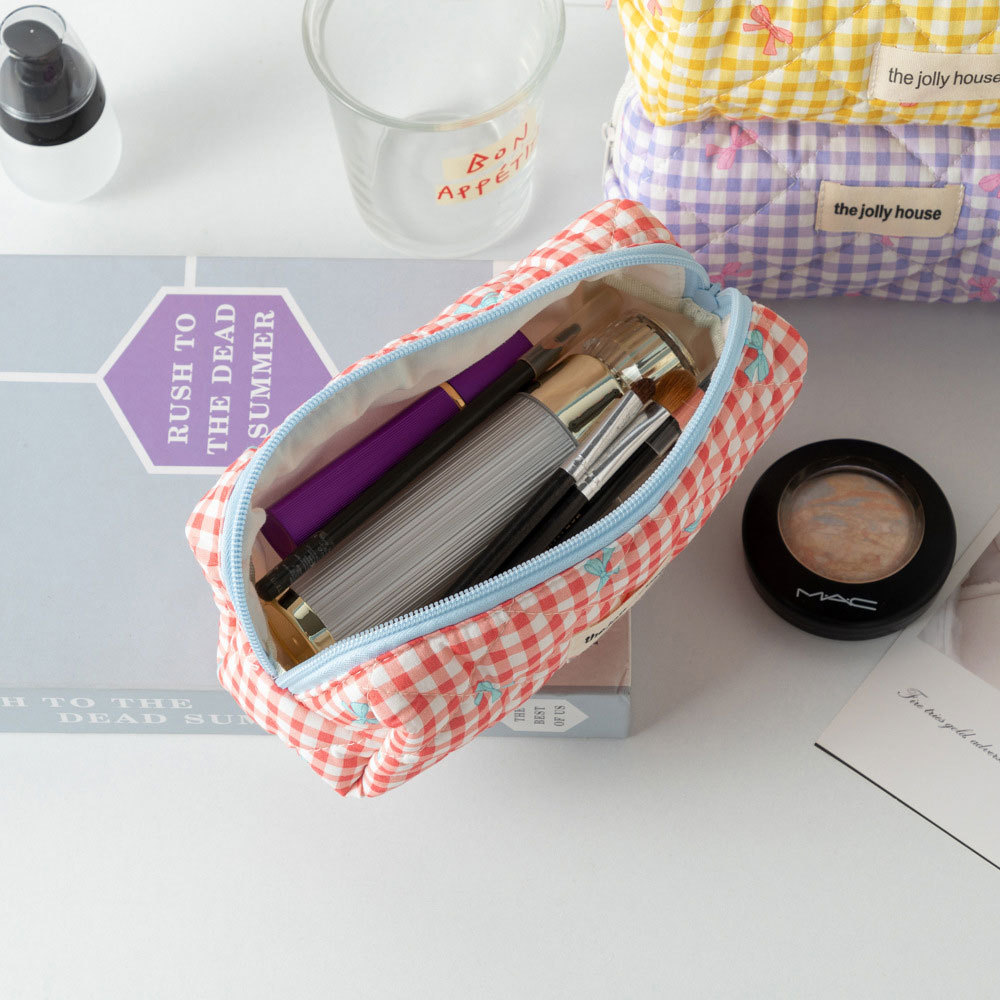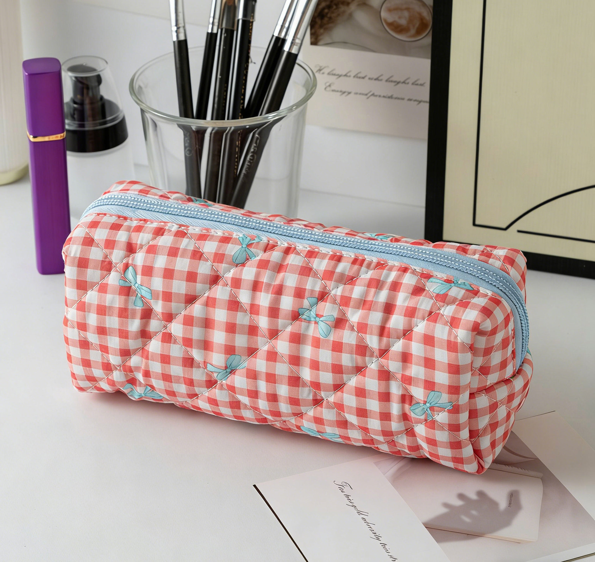 • 활 빨간 격자 무늬 스몰 사이즈 연필 케이스