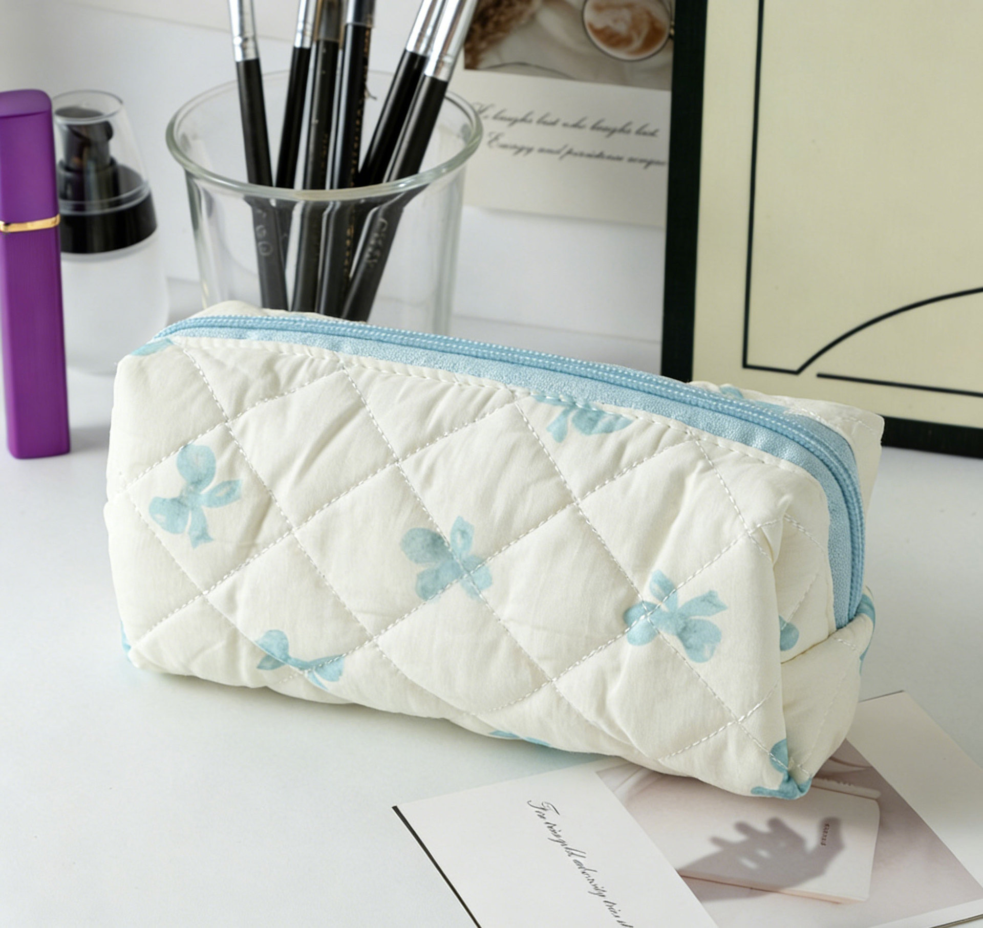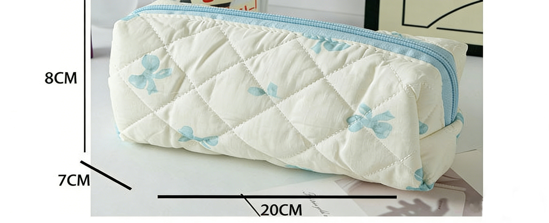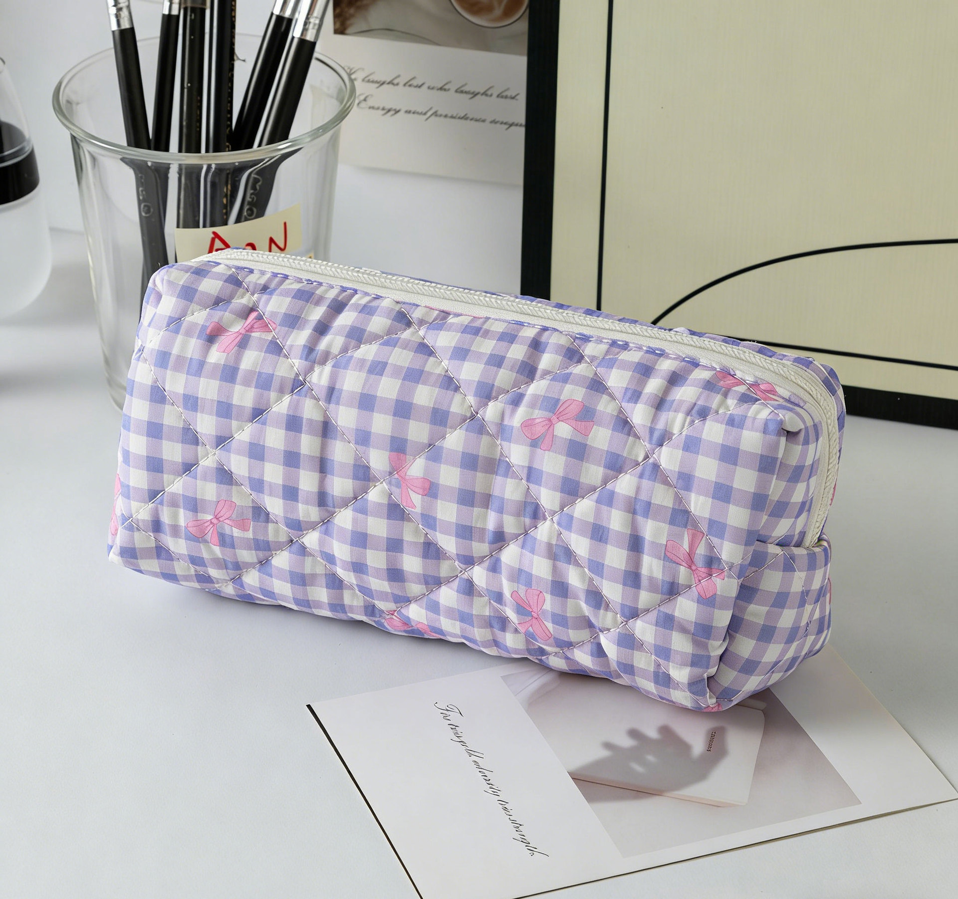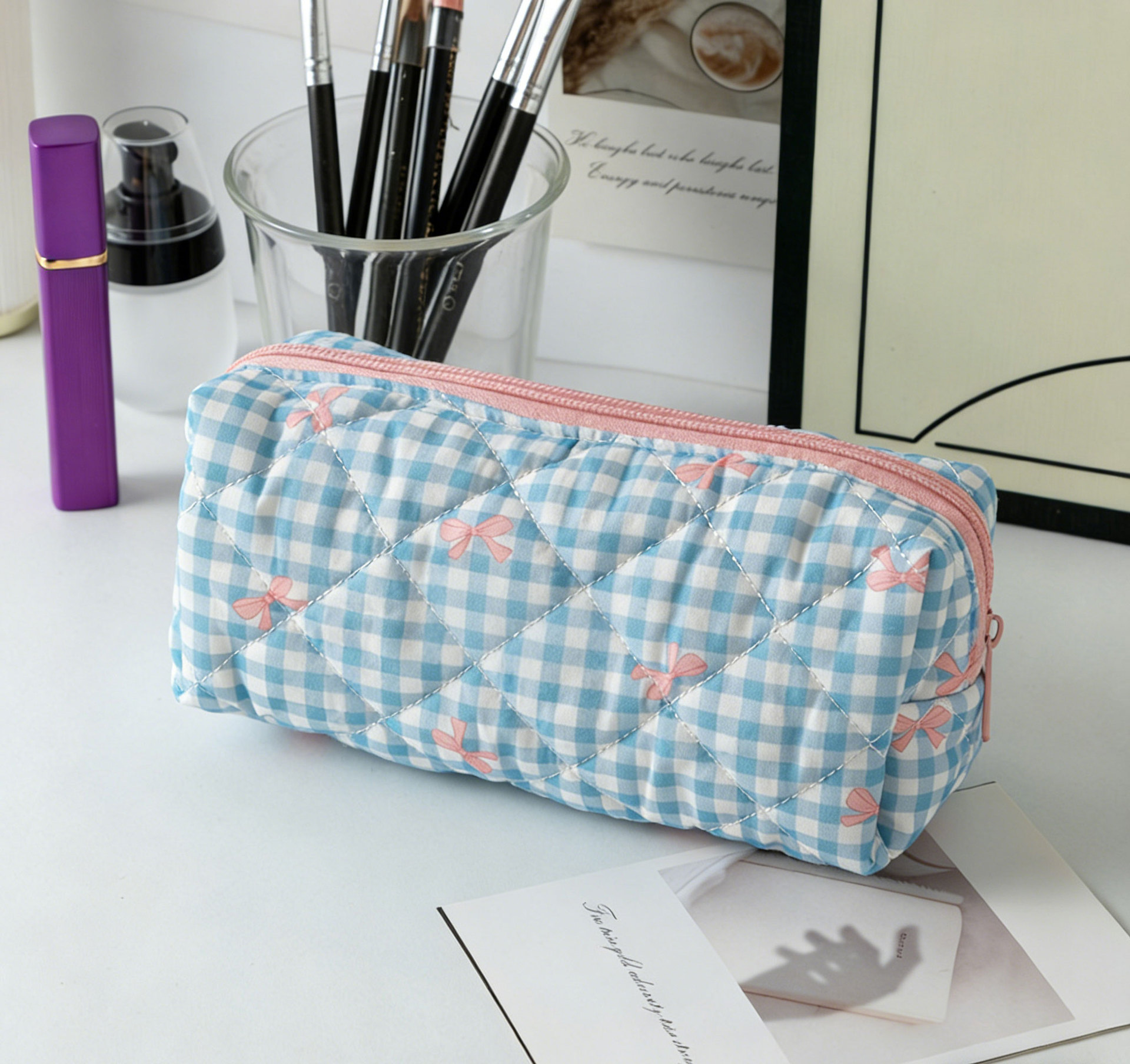 • 활 파란색 격자 무늬 스몰 사이즈 연필 케이스