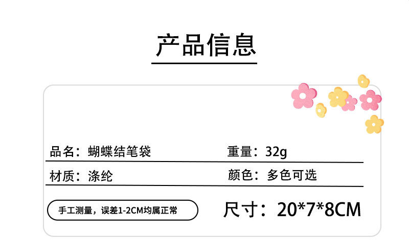 • 핑크 활 스몰 사이즈 연필 케이스 흰색 바닥