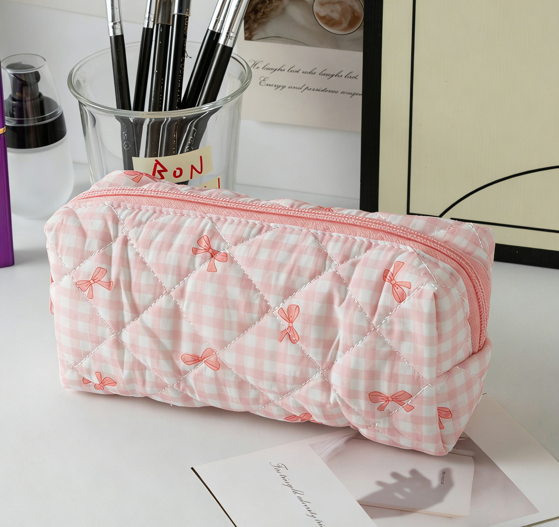 • 활 핑크 격자 스몰 사이즈 연필 케이스