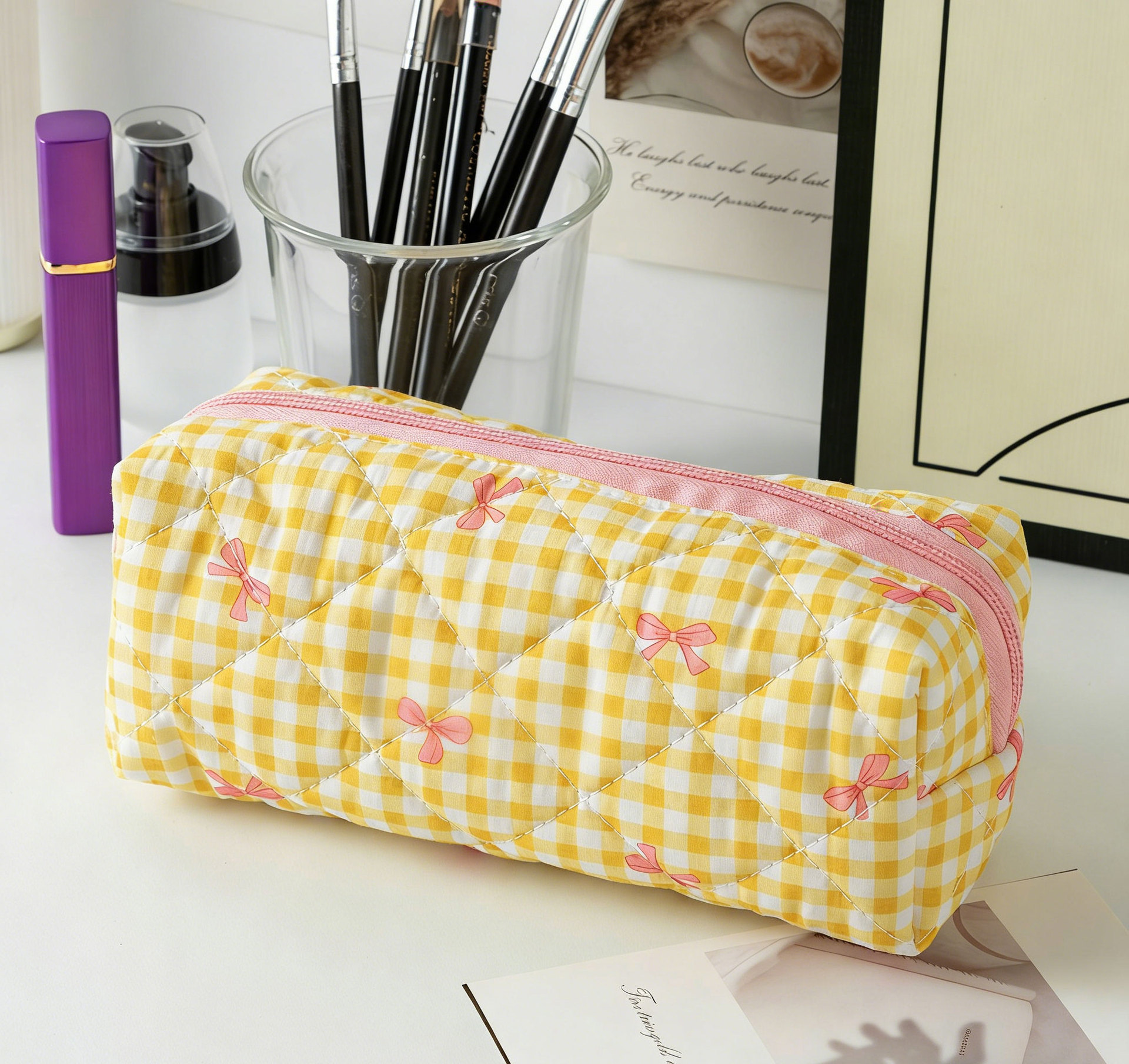 • 활 노란색 체크 스몰 사이즈 연필 케이스