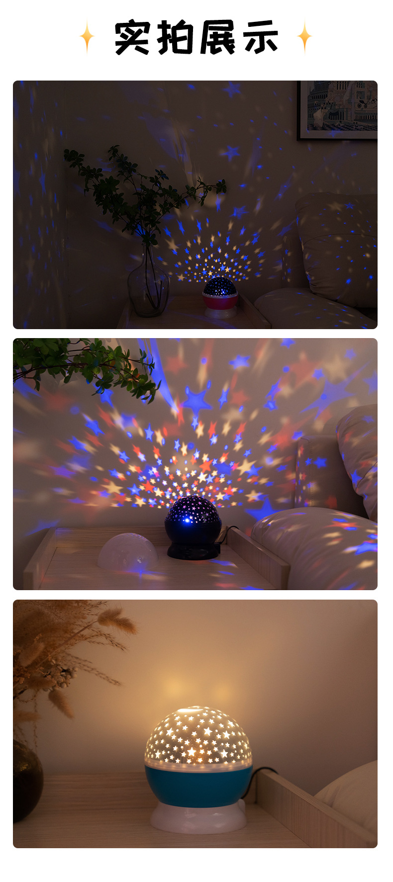 별이 빛나는 하늘 분위기 프로젝션 램프, 다채로운 별이 빛나는 하늘 램프, 침실 침대 옆 야간 조명, 별과 달 분위기 램프, LED 야간 조명