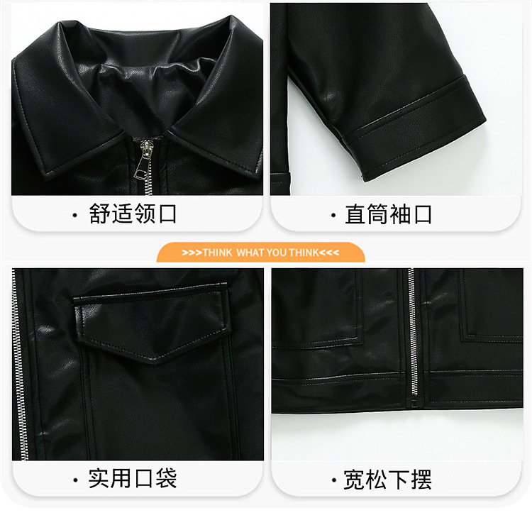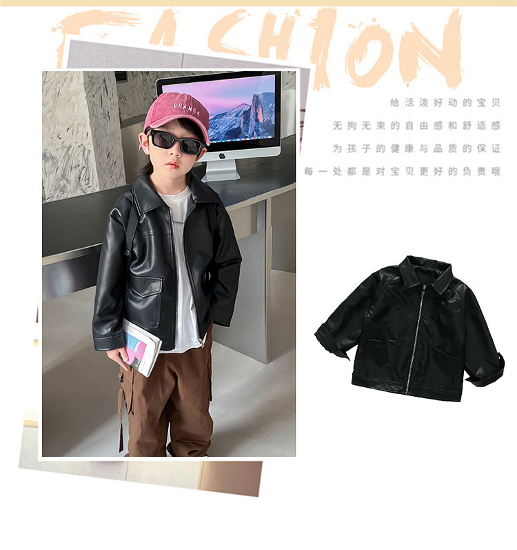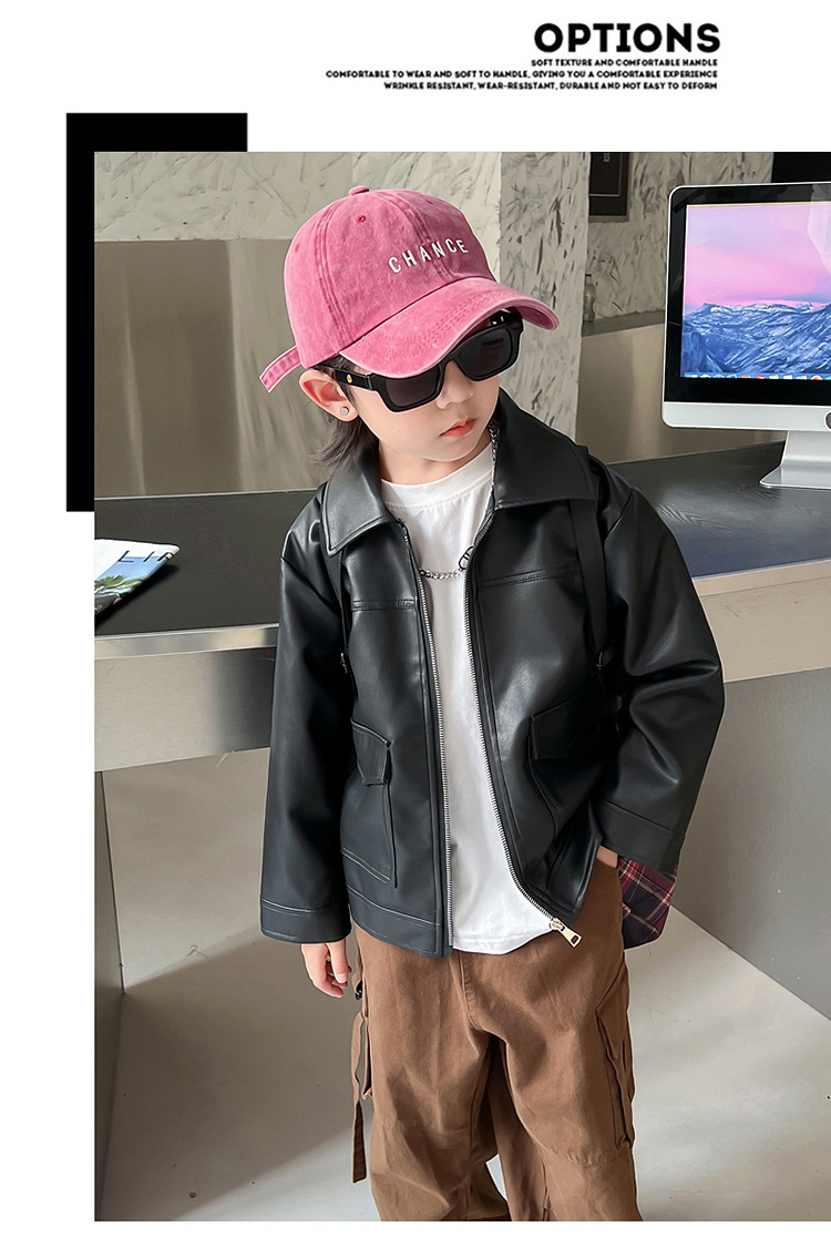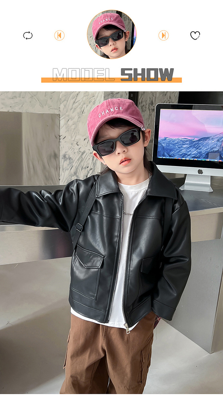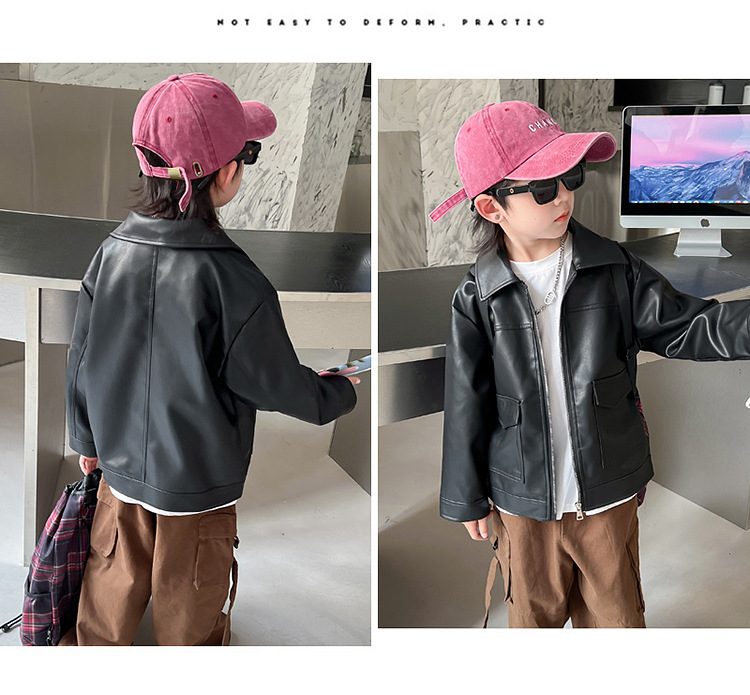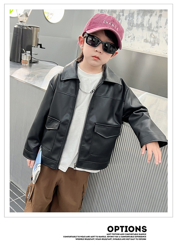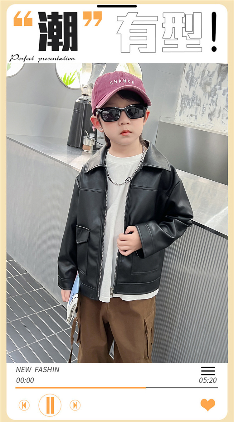 소년의 가을 가죽 자켓 2024 봄과 가을 새로운 어린이 오토바이 스타일 가죽 자켓 아기의 옷깃 최고 유행스토어 가기