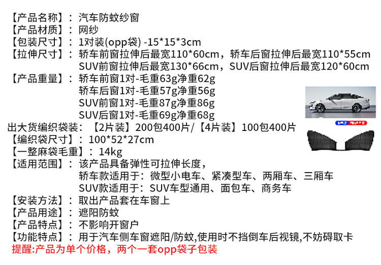 자동차 안티-모기 커튼 여름 햇빛 커튼 사이드 창 메쉬 통기성 햇빛 태양 보호 단열 커튼 모기 창 커버