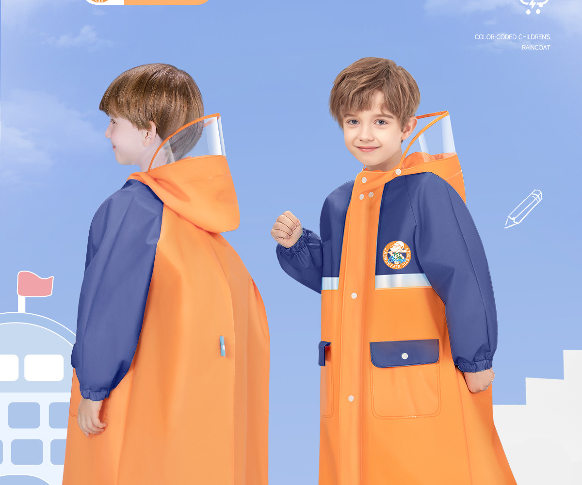 [머리카락의 세대] 어린이 비옷 도매 대학 스타일 유치원 큰 아이들은 학교 가방을 들고 학교에 간다