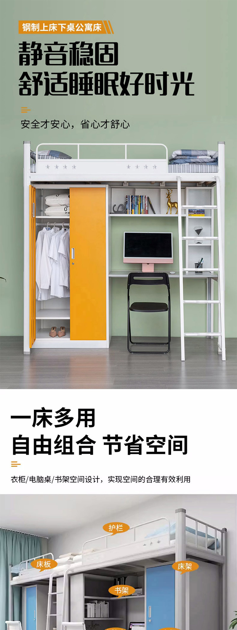 침대와 테이블 조합 침대, 대학 기숙사, 이층 침대, 가정용 소형 철제 프레임 침대, 아파트 철제 프레임 침대 맞춤 제작