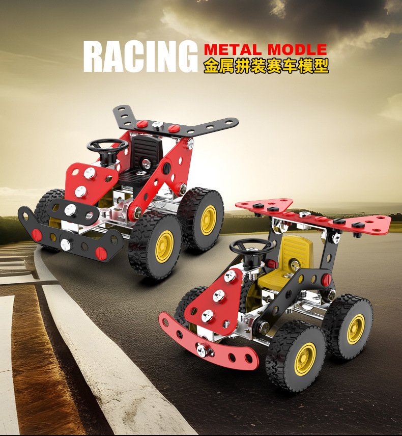 어린이 교육 조립 장난감 금속 레이싱 모델 DIY 수제 조립 건물 블록 소년 선물 국경 6-9 세