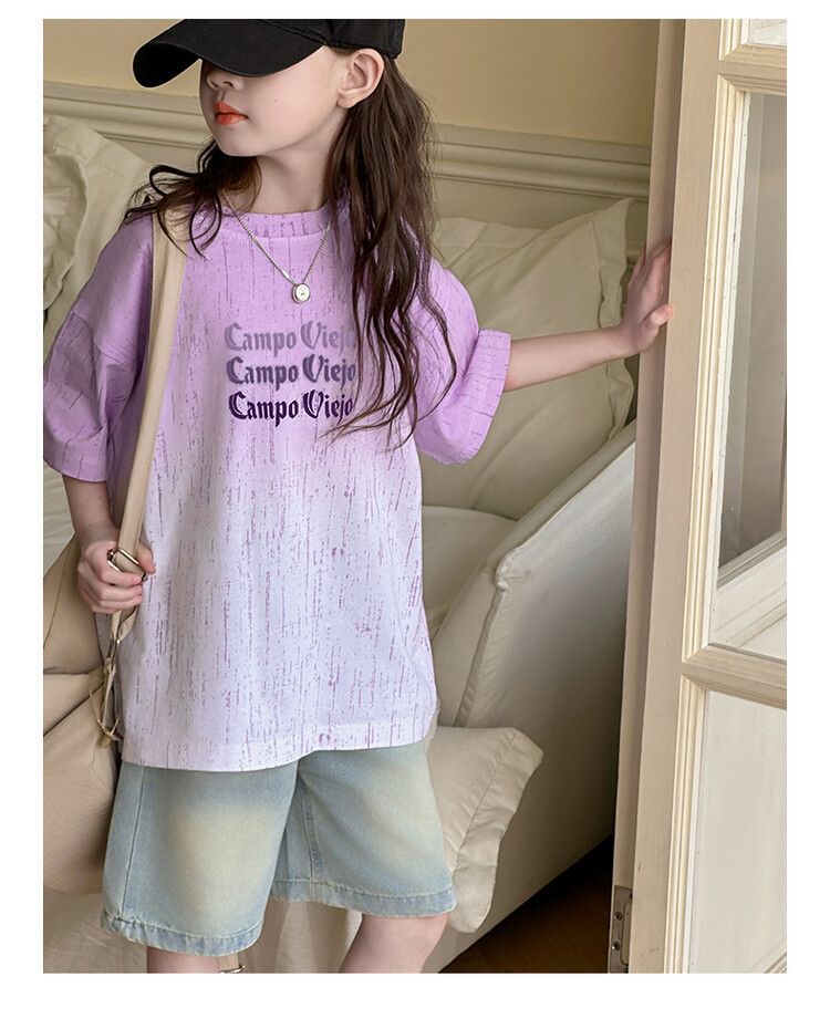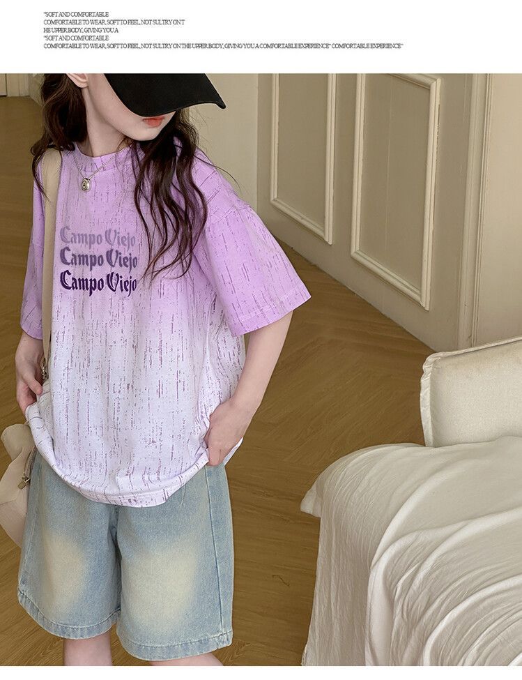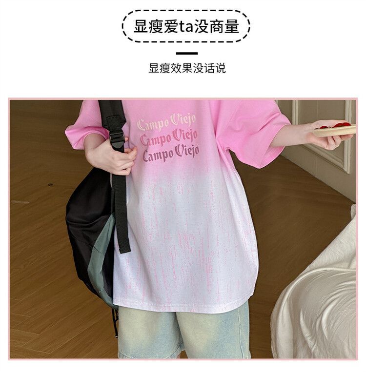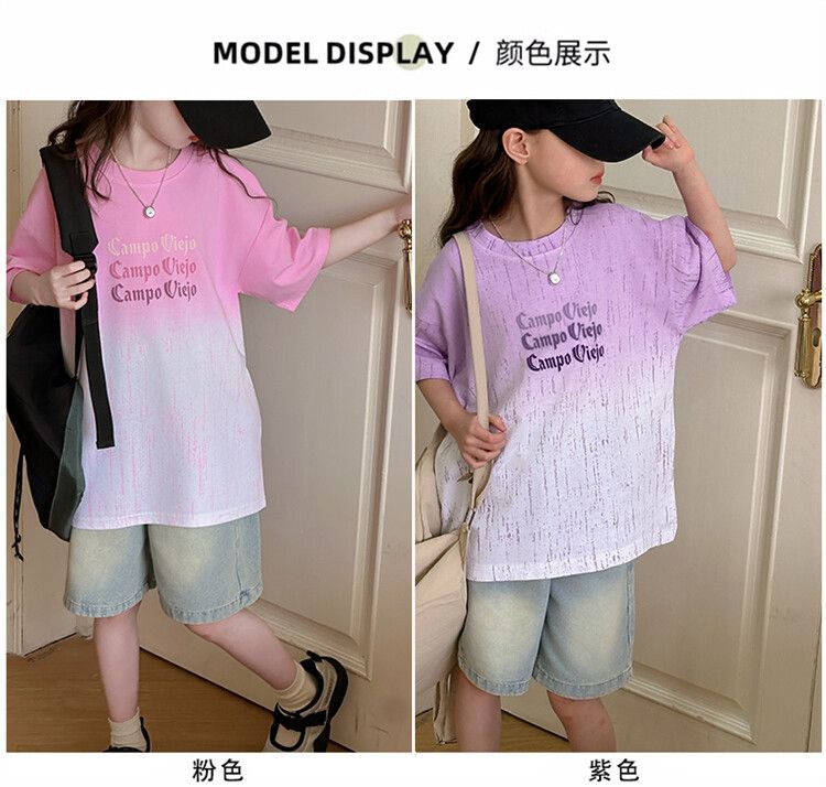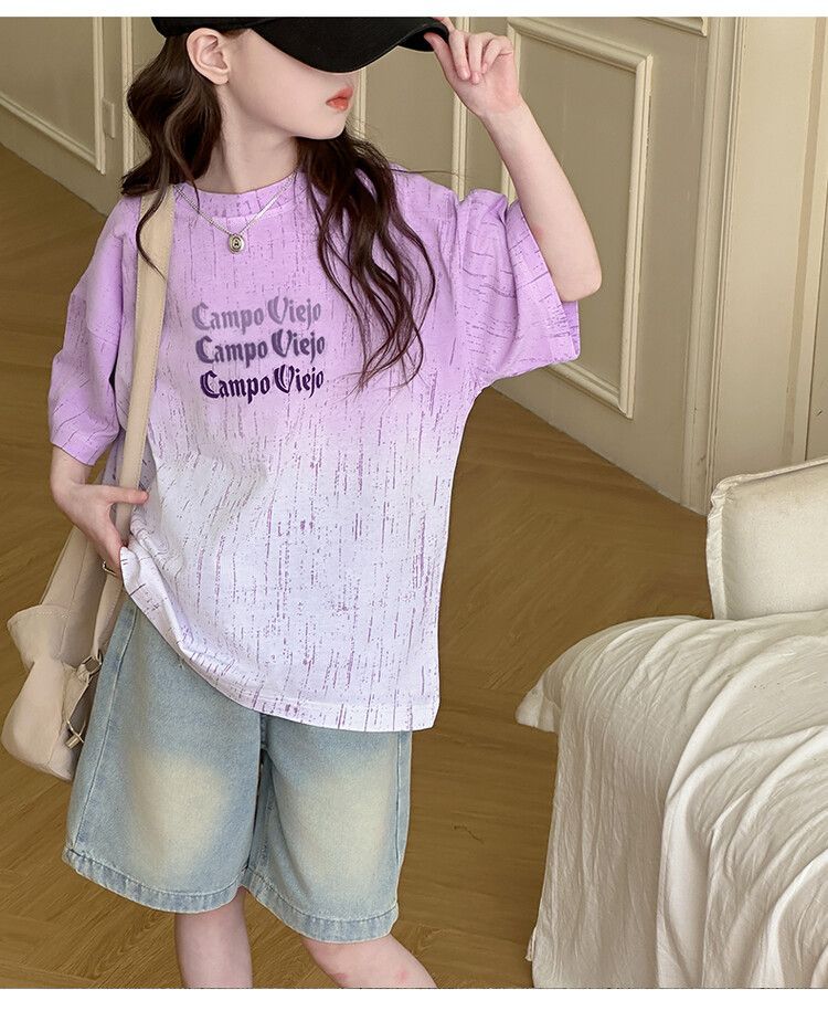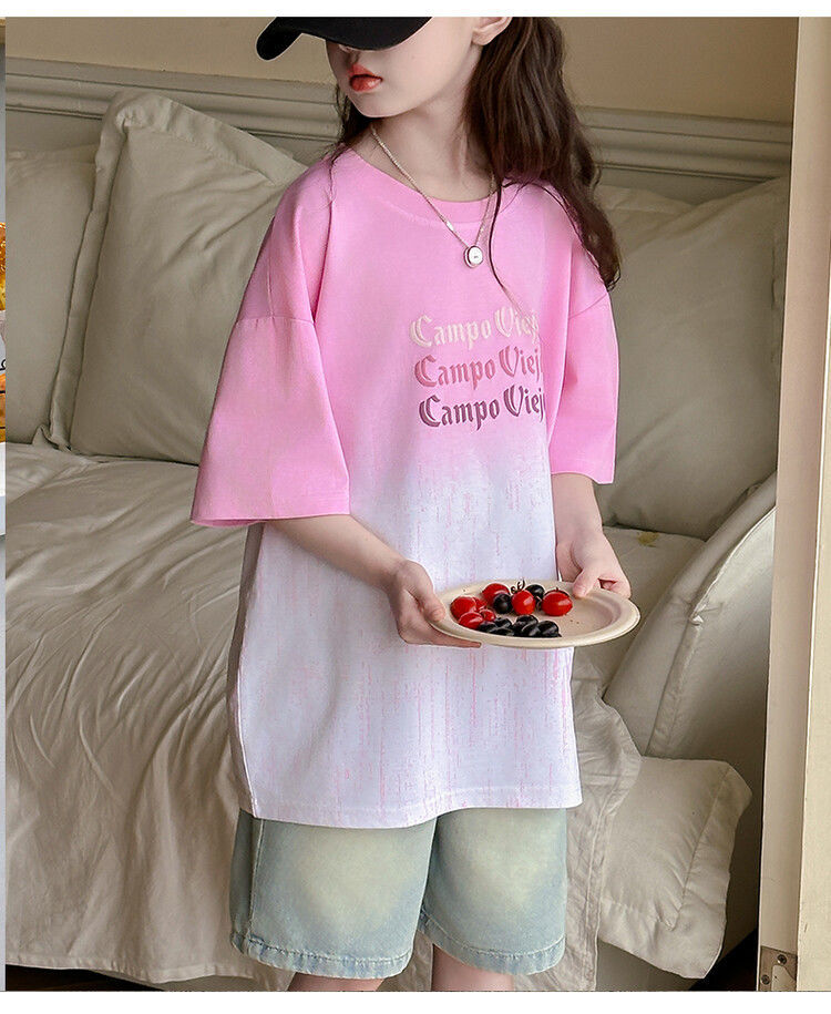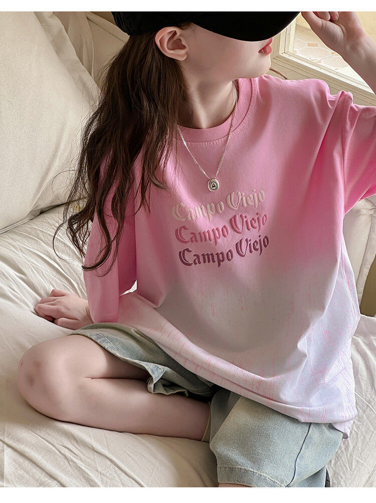 여자 반팔 티셔츠 2025 새로운 스타일 여자 여름 옷 어린이 인터넷 연예인 유행 탑 여름 그라데이션 반팔 티셔츠스토어 가기