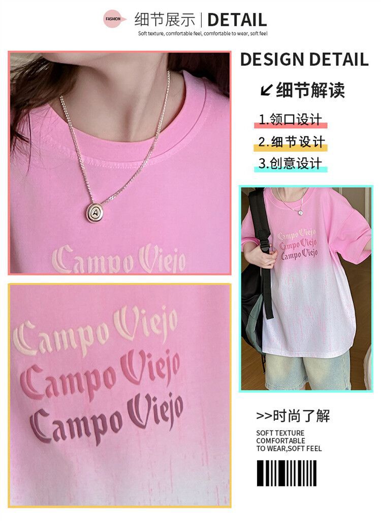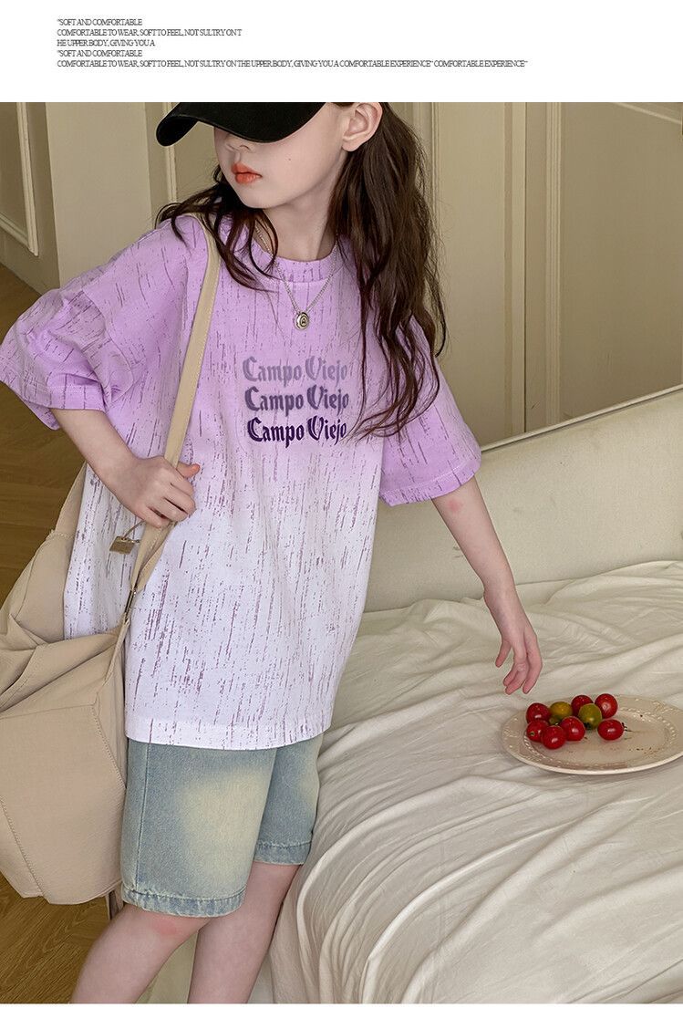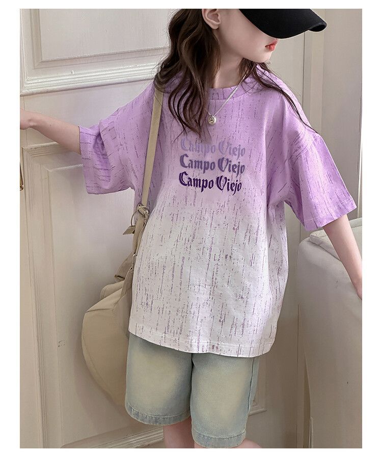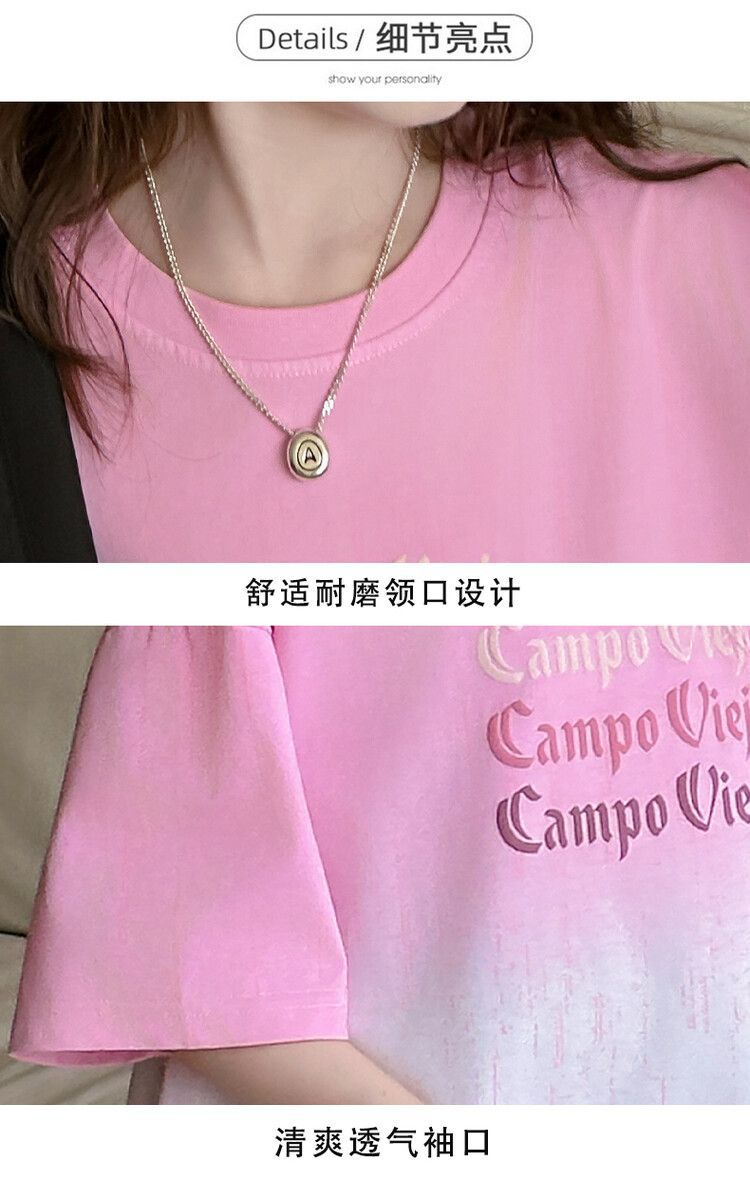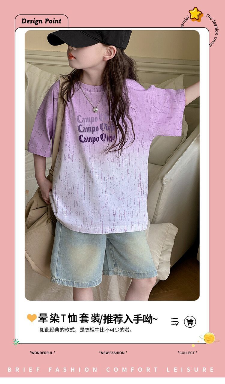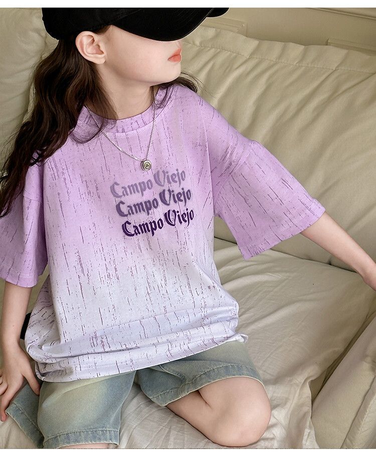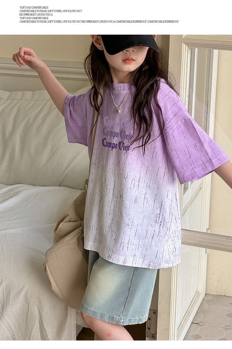 여자 반팔 티셔츠 2025 새로운 스타일 여자 여름 옷 어린이 인터넷 연예인 유행 탑 여름 그라데이션 반팔 티셔츠스토어 가기