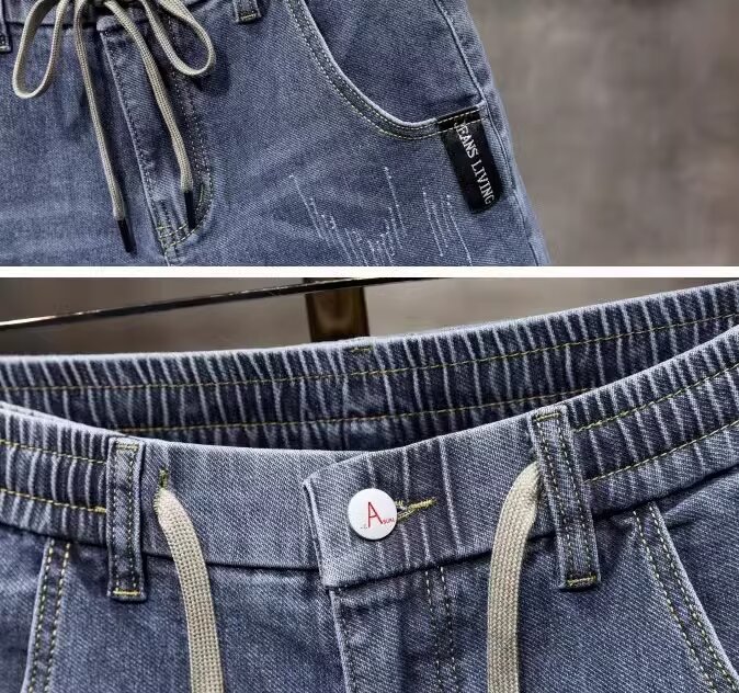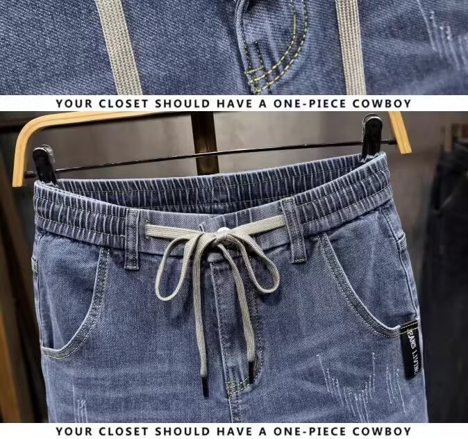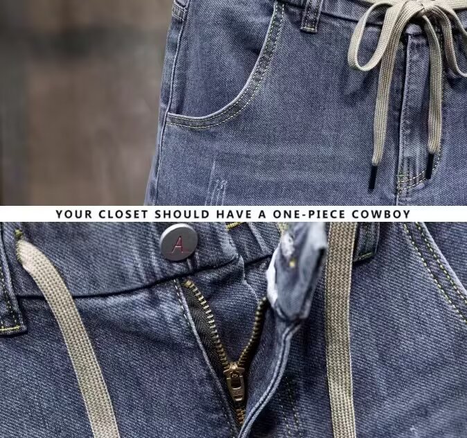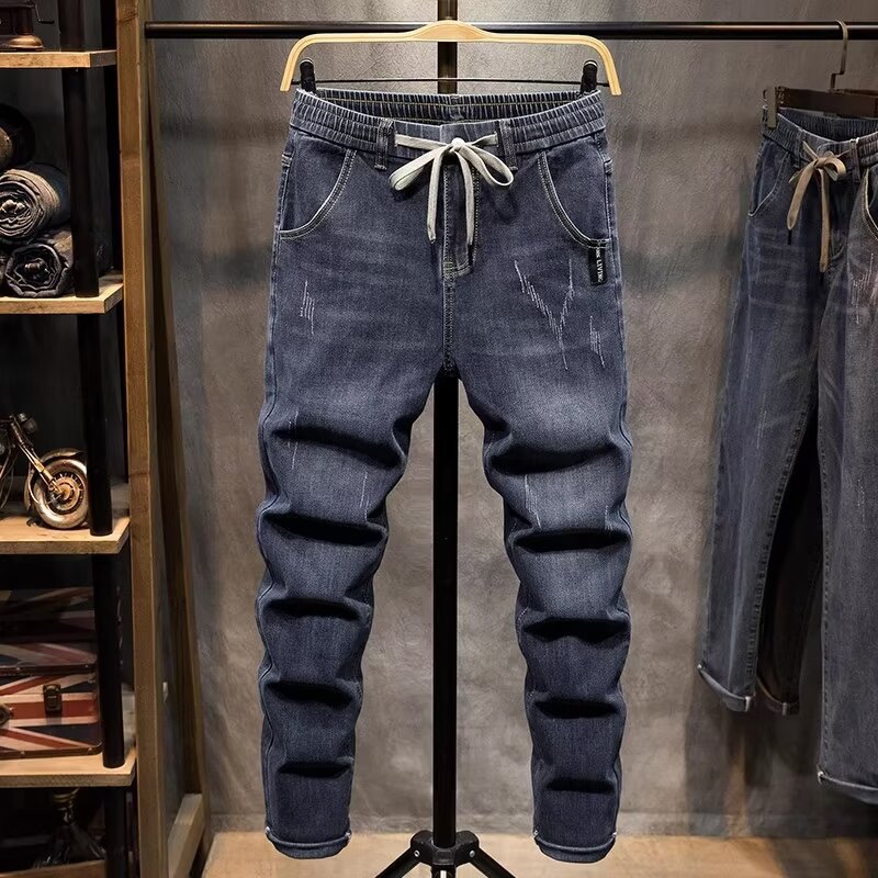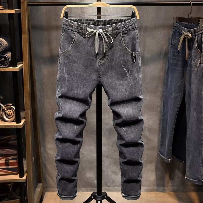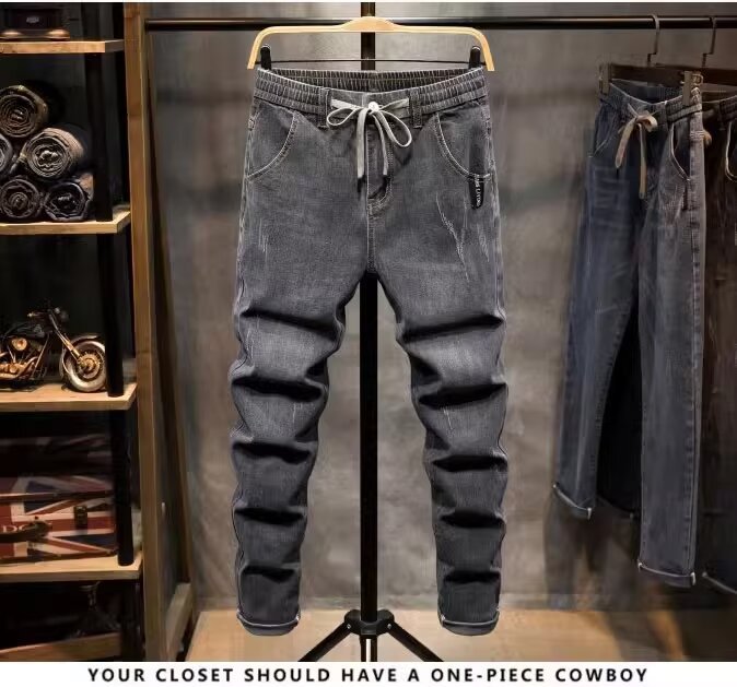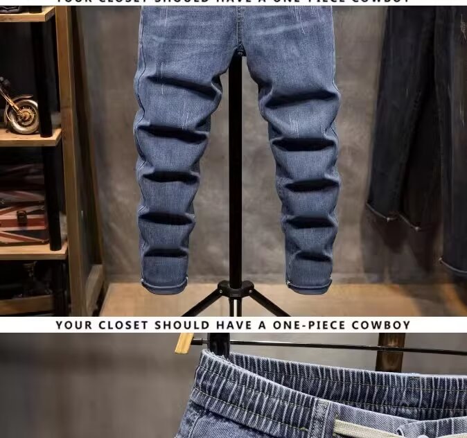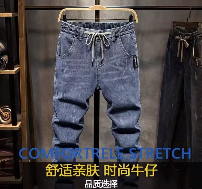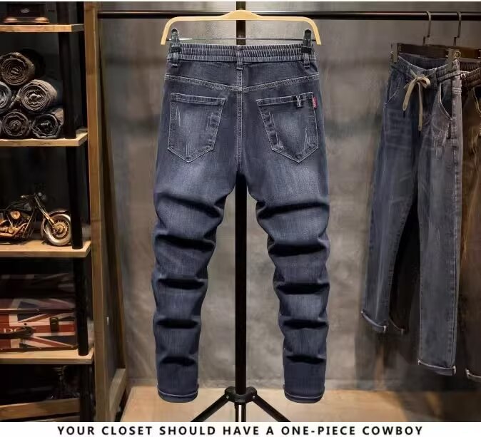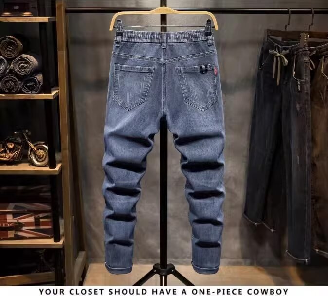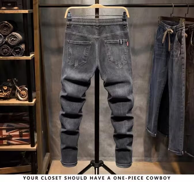 2025 신상 인기 탄력 허리 데님 팬츠 남성용 스트레이트 봄 가을 스타일 조임끈 여름 얇은 슬림핏 롱 팬츠 슬림핏 바지스토어 가기