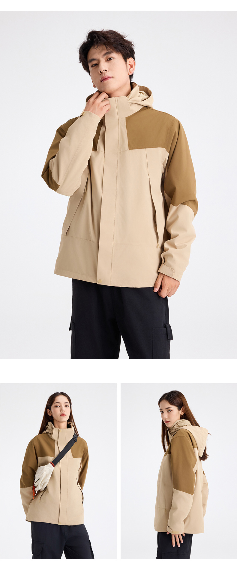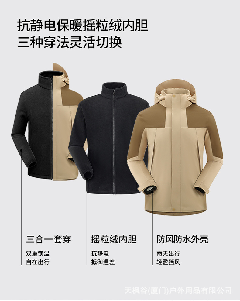 GB GB32614 압력 접착제 충전 옷 3 대 1 남성 야외 안티 스톰 등산 재킷 여성용 작업복