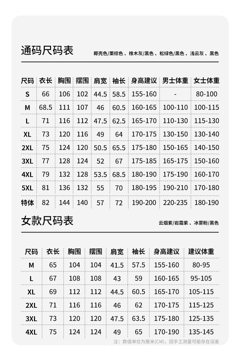 • 7XL (20 위안 추가 필요)