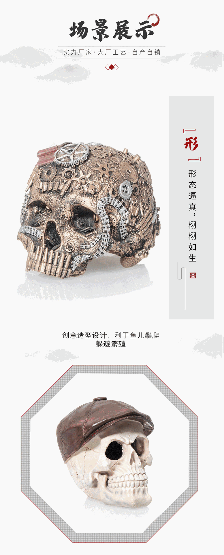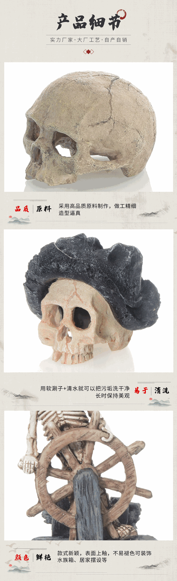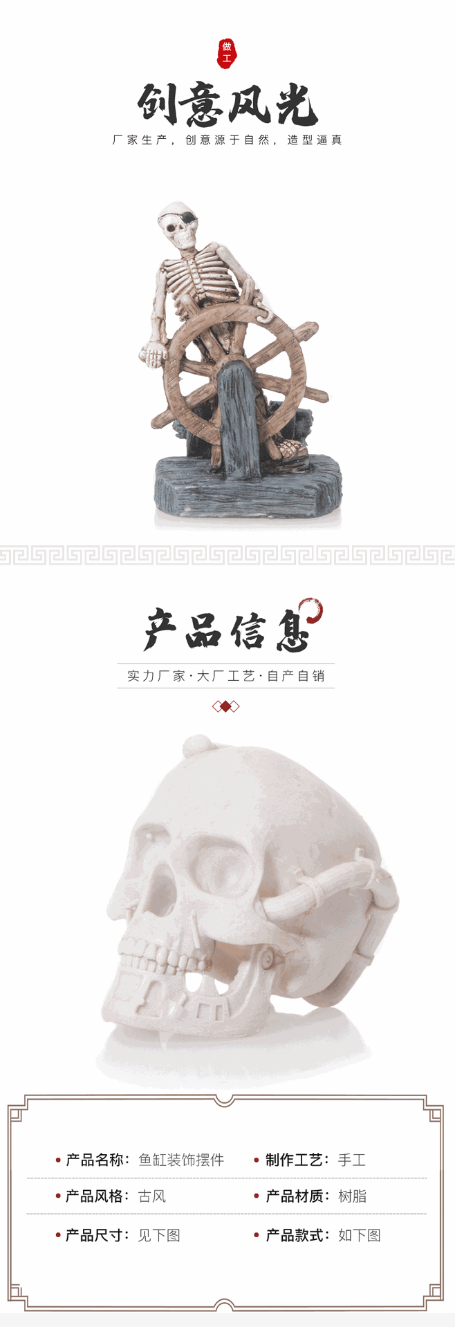물고기 탱크 풍경 해골 수지 장식 세트 수족관 공예 창조적 인 장식품 시뮬레이션 해골 물고기 탱크 풍경스토어 가기
