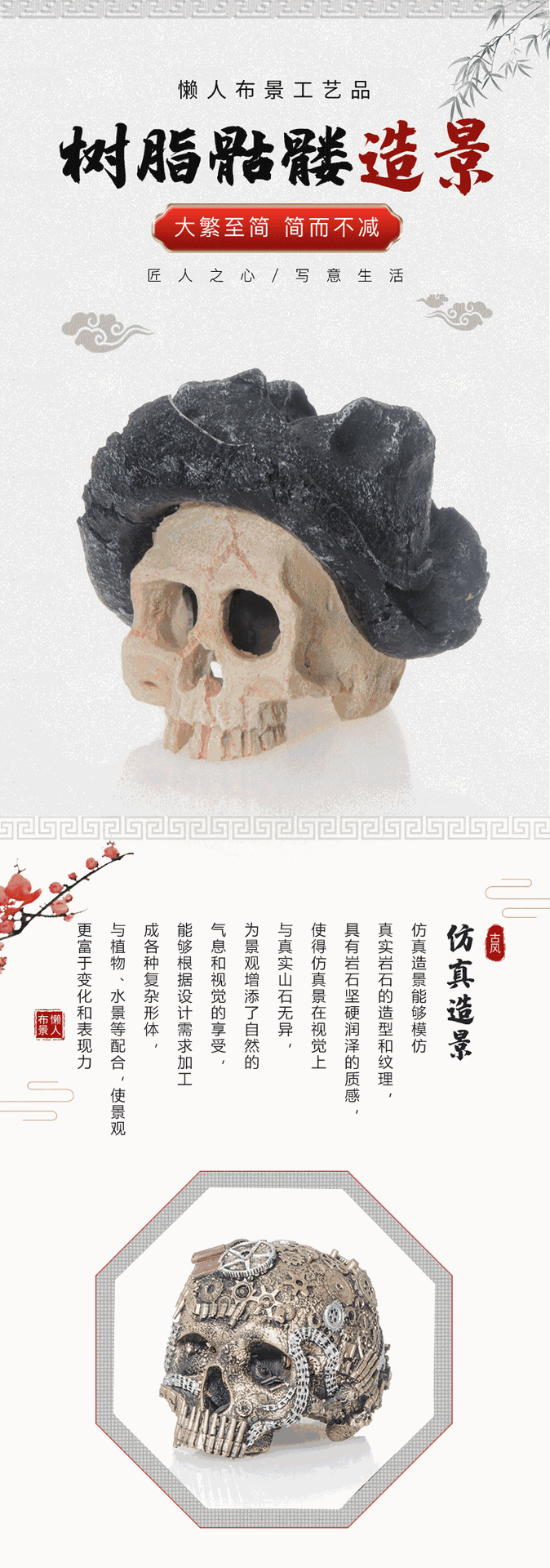 물고기 탱크 풍경 해골 수지 장식 세트 수족관 공예 창조적 인 장식품 시뮬레이션 해골 물고기 탱크 풍경