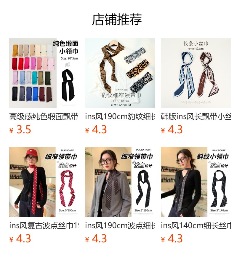 인스 스타일 고급 새틴 얇고 긴 200cm 스카프 여성용 벨트 가방 장식 머리 장식 스카프스토어 가기