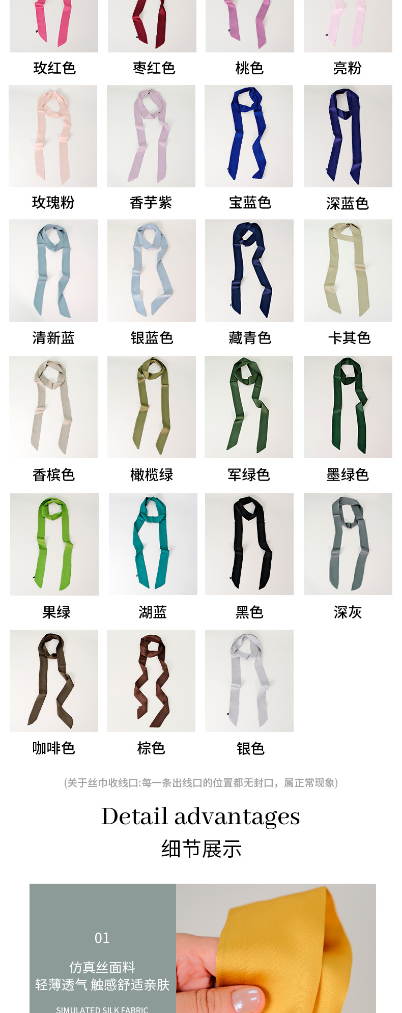 인스 스타일 고급 새틴 얇고 긴 200cm 스카프 여성용 벨트 가방 장식 머리 장식 스카프