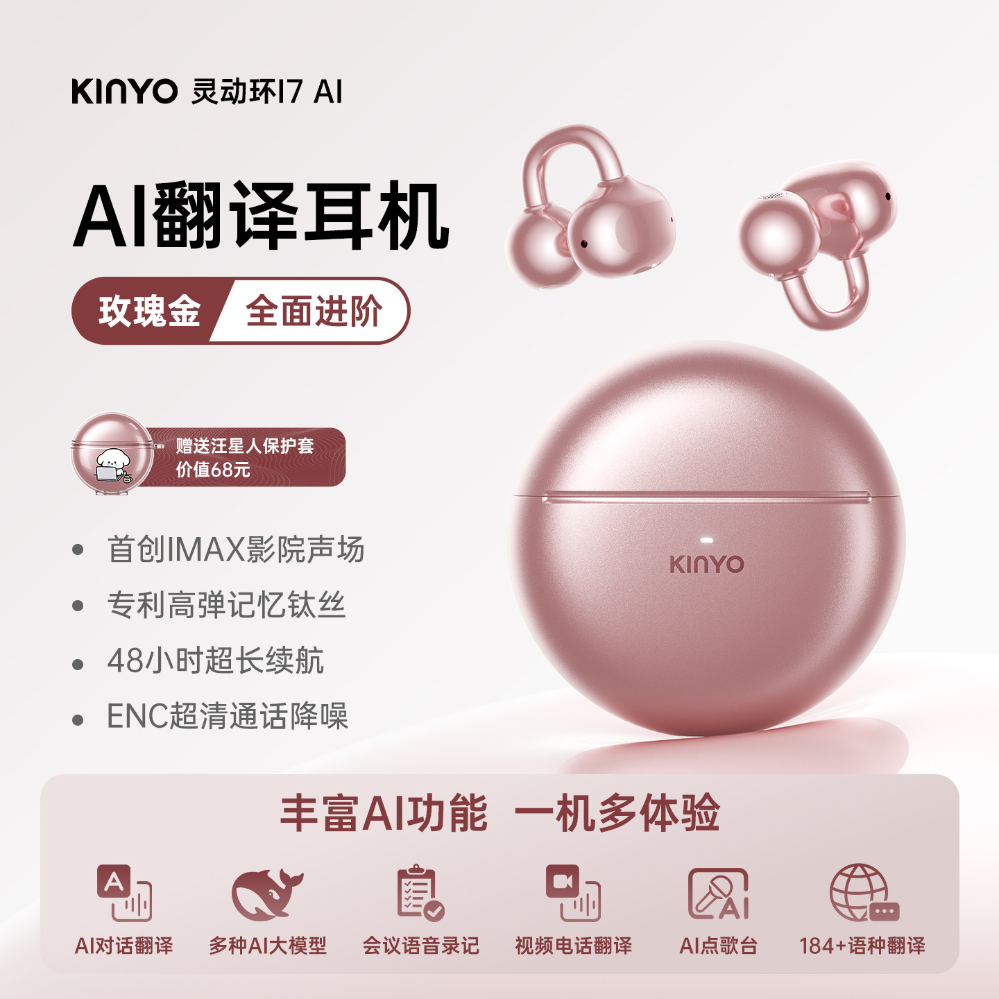 • 【i7 로즈 골드】 AI 실시간 번역 + 특허받은 편안한 착용의 새로운 기준 + 슈퍼 스페이스 오디오 청취 경험 + ENC 초고화질 통화 소음 감소