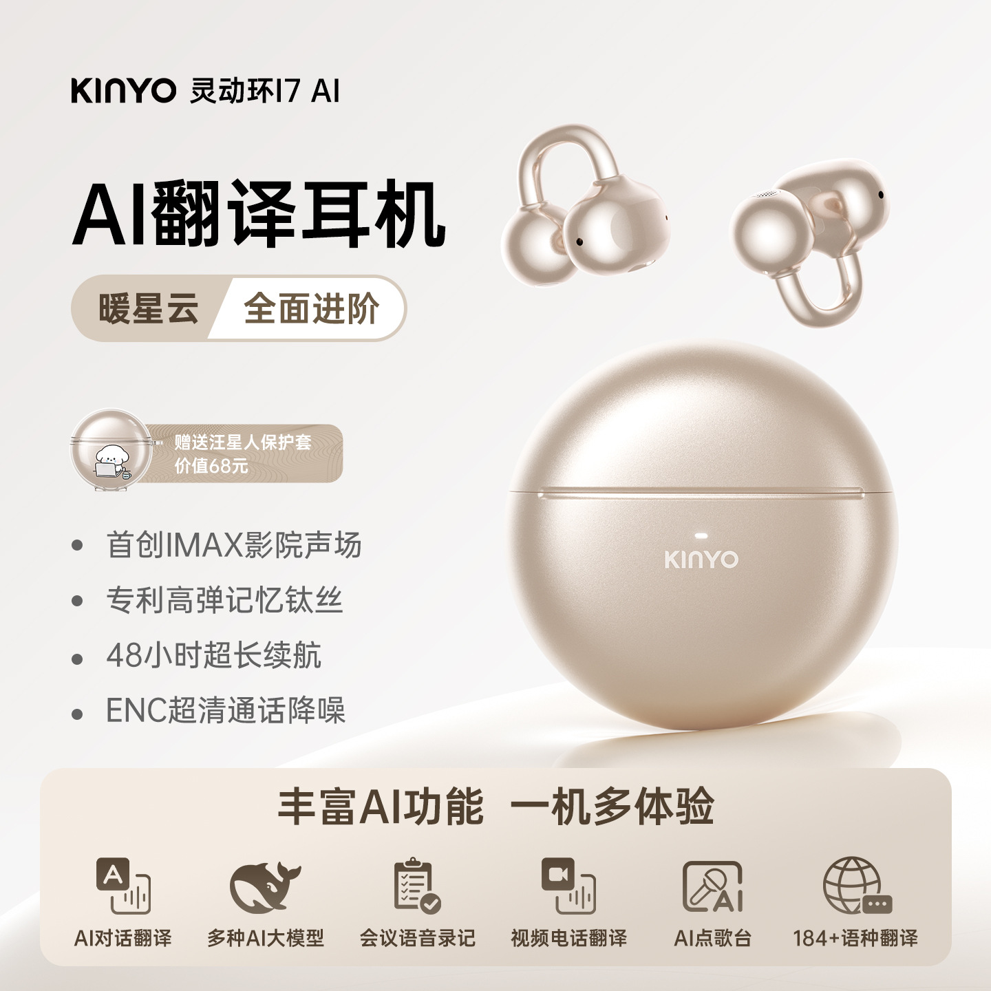 • 【i7 웜 스타 클라우드】 AI 실시간 번역 + 특허받은 편안한 착용의 새로운 기준 + 초공간 오디오 청취 + ENC 초선명 통화 소음 감소