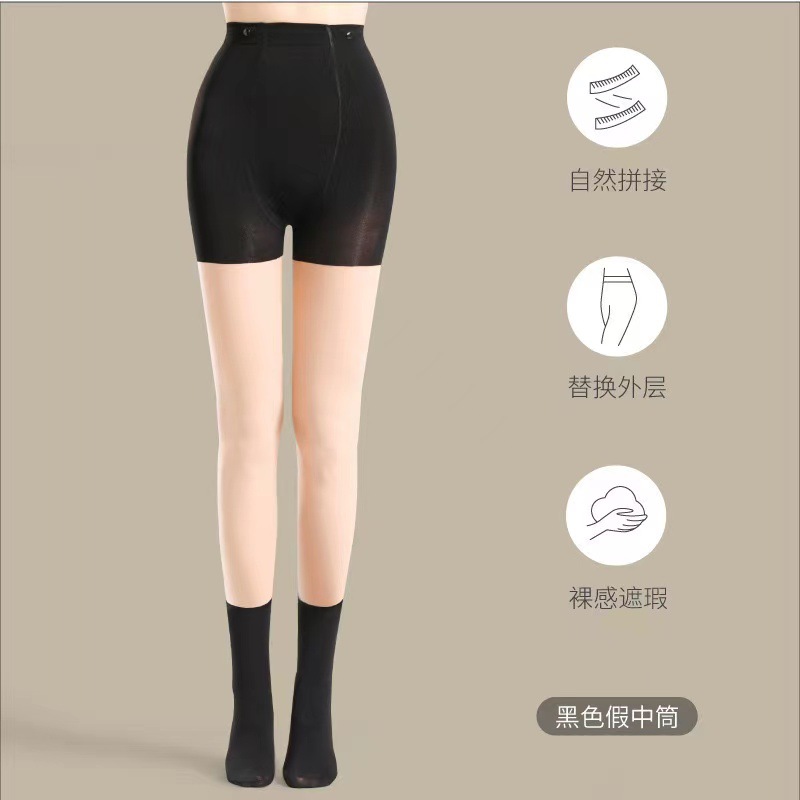 봄 가을과 겨울 바느질 실크 스타킹 여성을위한 가벼운 다리 유물 가짜 투피스 기모 레깅스 팬츠 가짜 허벅지 블랙 오버 더 무릎 양말