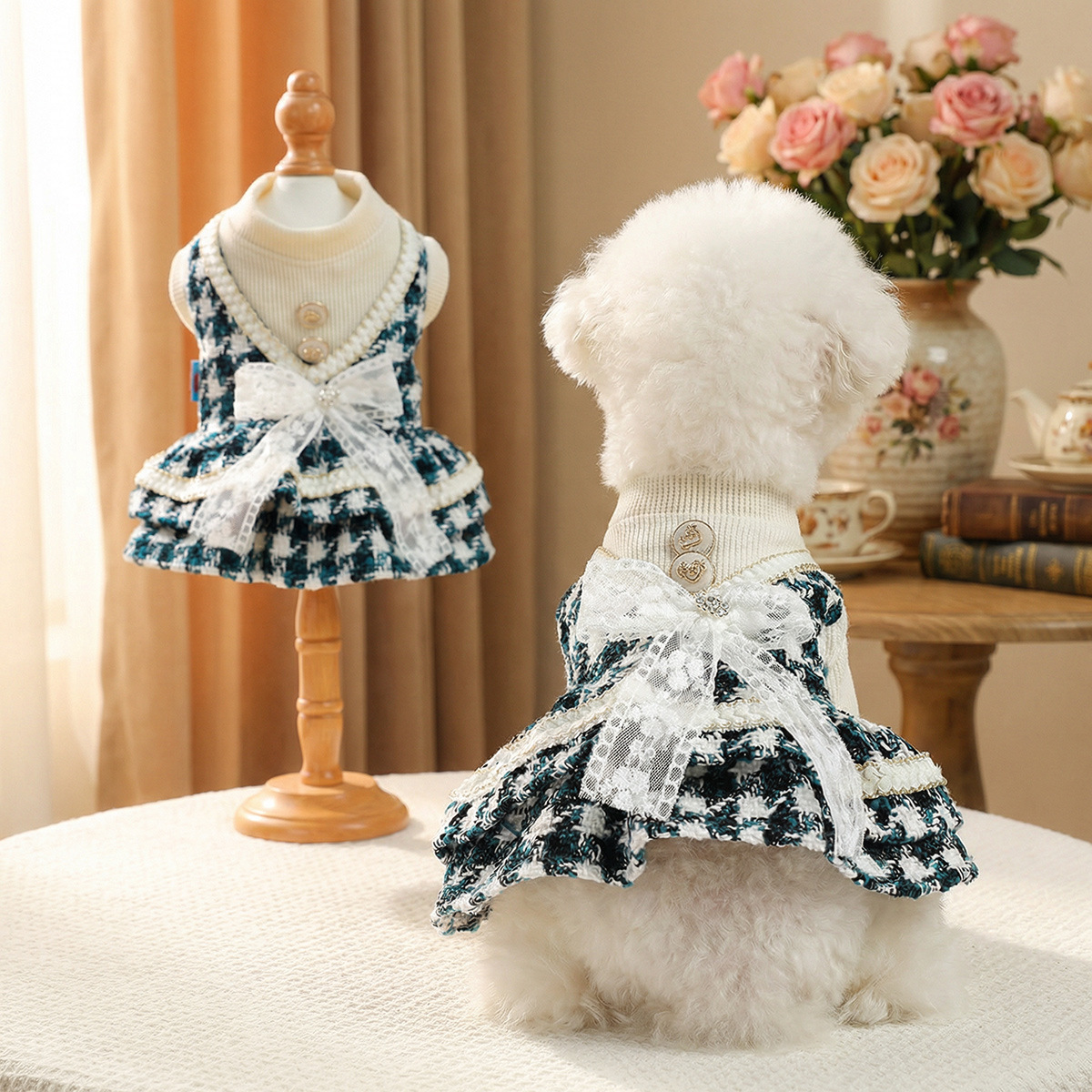 즉시 배송 가능한 애완동물 의류, 강아지와 고양이 옷, 귀여운 공장제작 가을 겨울 작은 프랑스 스타일 드레스 모음스토어 가기