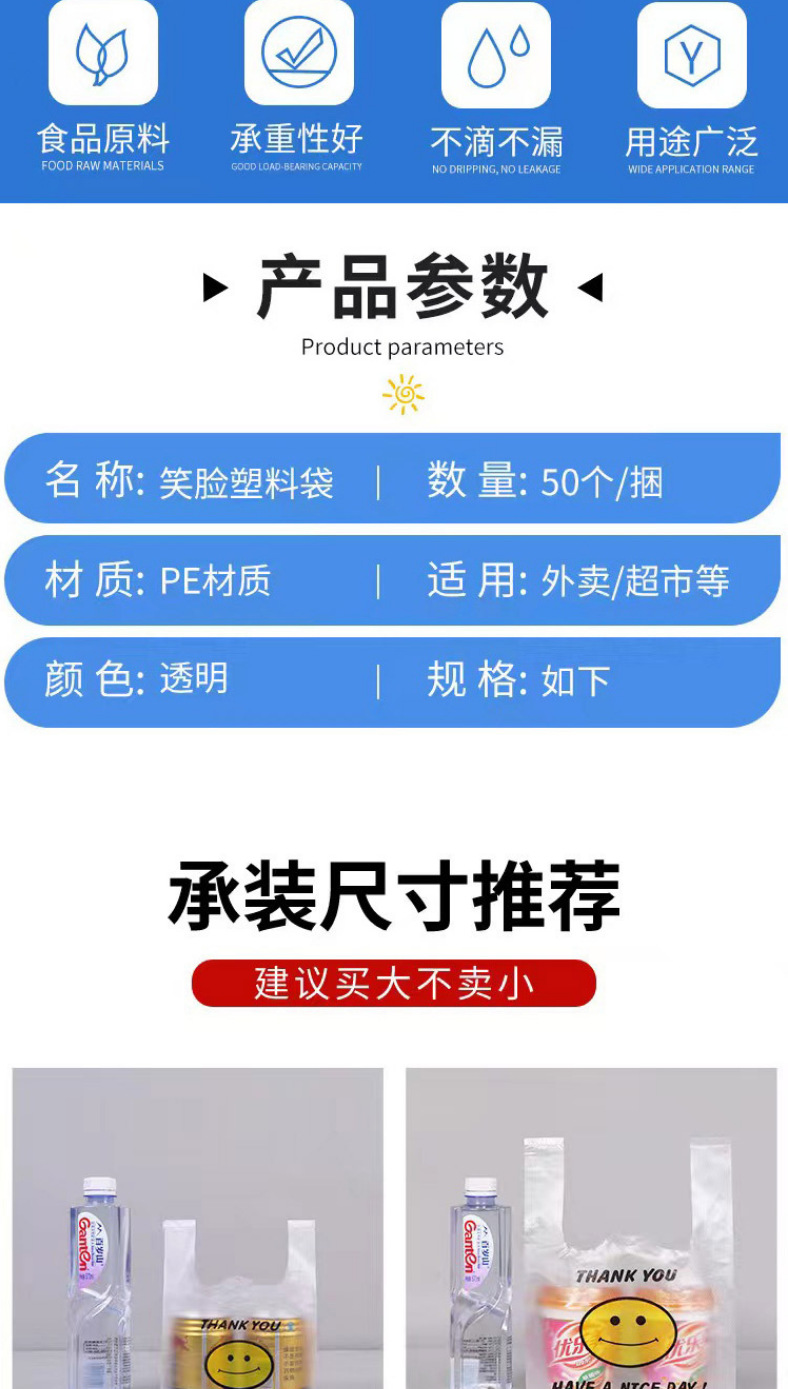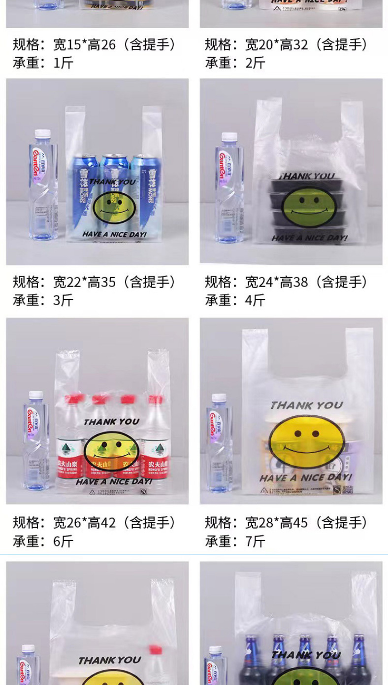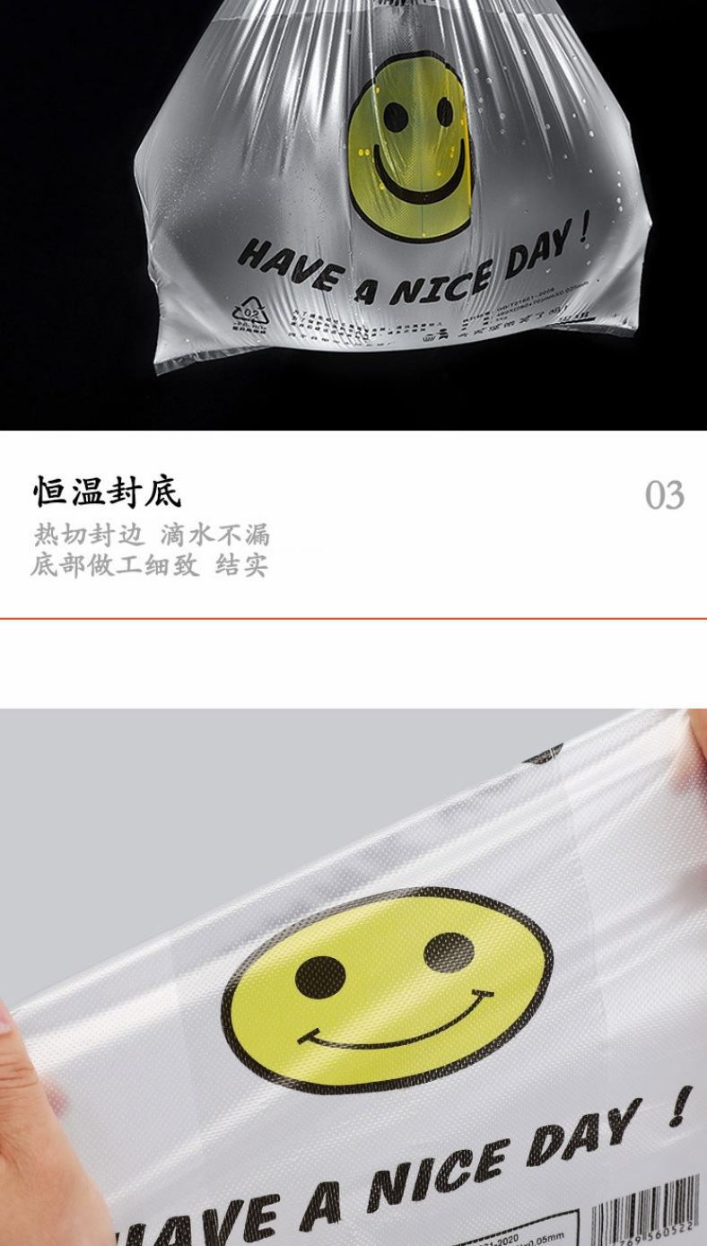 투명 식품 등급 조끼 스타일 포장 편의 가방 빨간색 웃는 얼굴 비닐 봉투 도매 테이크 아웃 휴대용 포장 가방