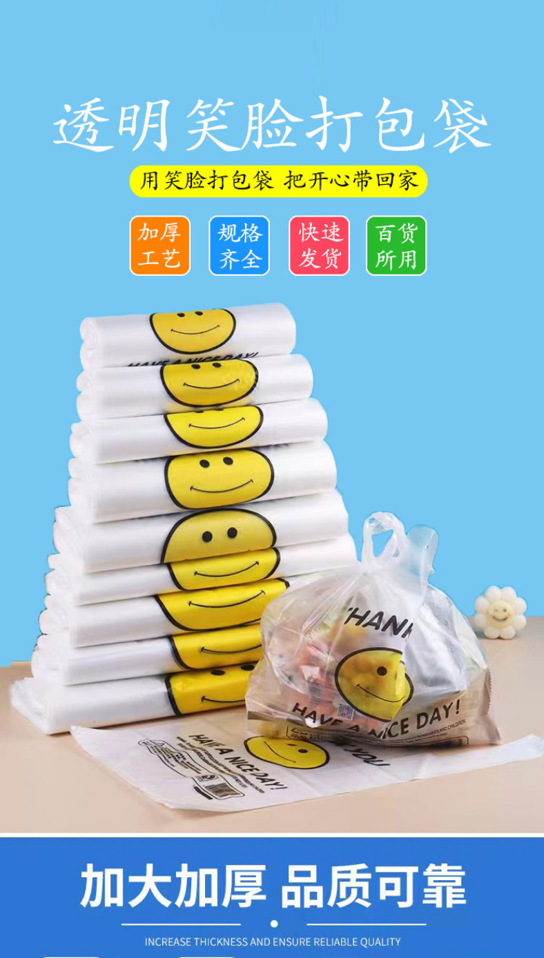 투명 식품 등급 조끼 스타일 포장 편의 가방 빨간색 웃는 얼굴 비닐 봉투 도매 테이크 아웃 휴대용 포장 가방스토어 가기
