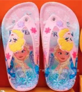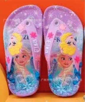 플립 플롭 여름 2024 새로운 소녀 만화 공주 얼음과 눈 소녀 슬리퍼 외부 미끄럼 방지 부드러운 바닥 어린이 샌들