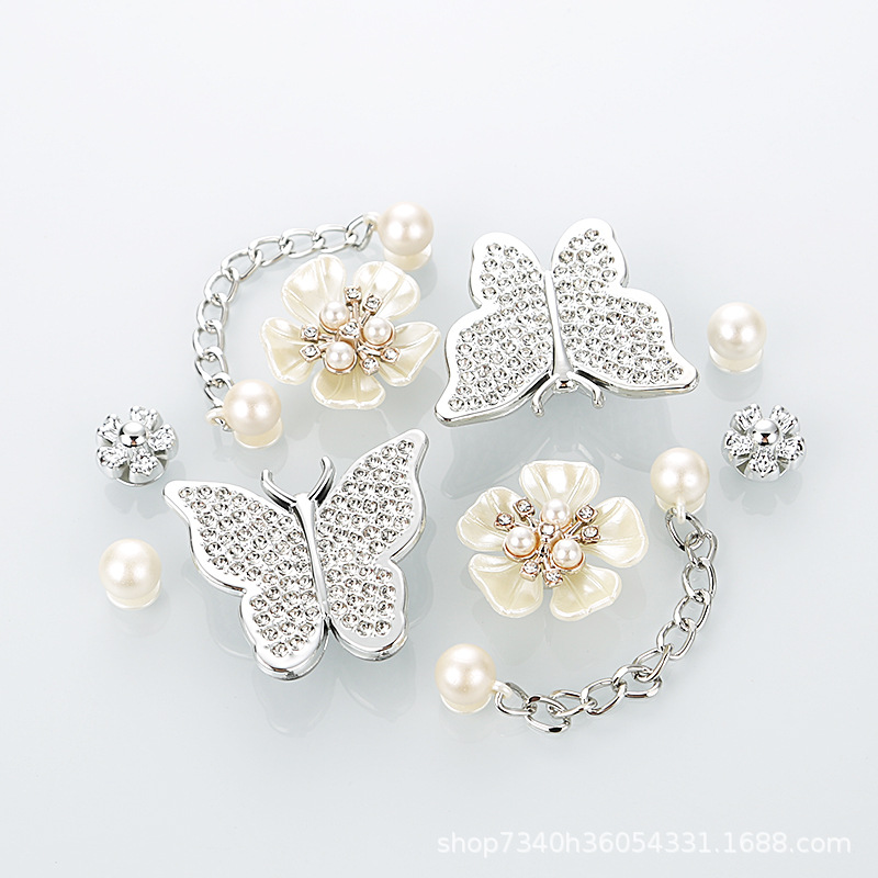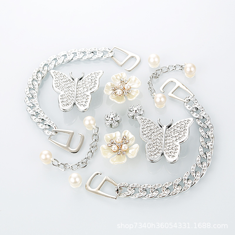 • 반짝이는 은빛 흰나비 짧은 구슬 체인