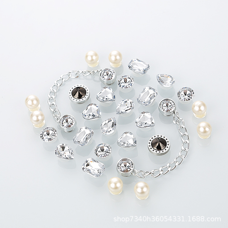 • 반짝이는 큰 잎 다이아몬드 꽃 + 비즈 체인