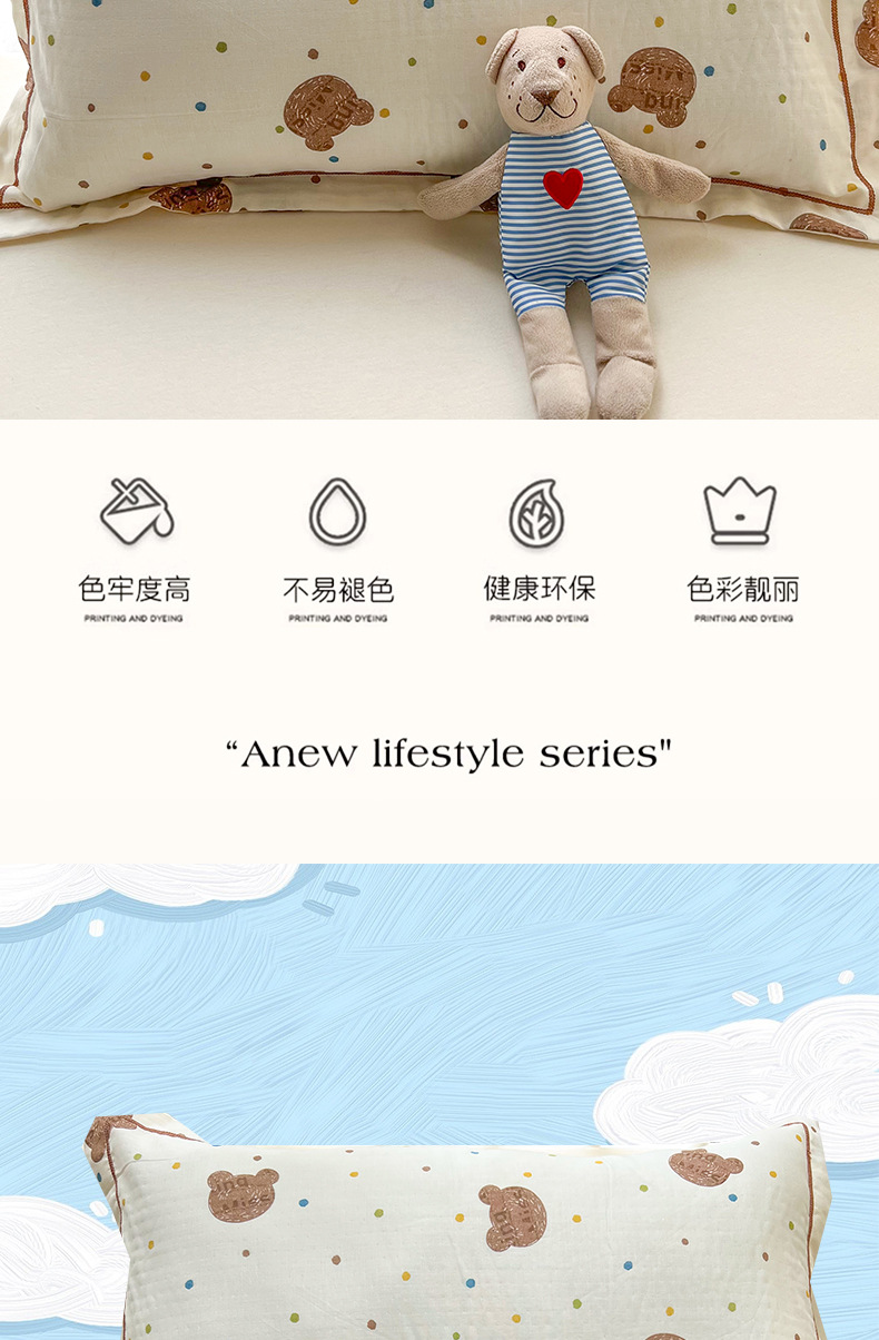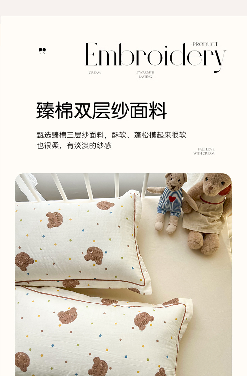 A 급 모성 및 유아용 면화 이중층 실 베갯잇 48x74cm 만화 귀여운 어린이 성인 베갯면 더블