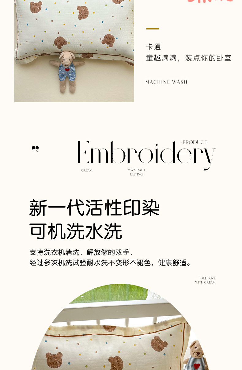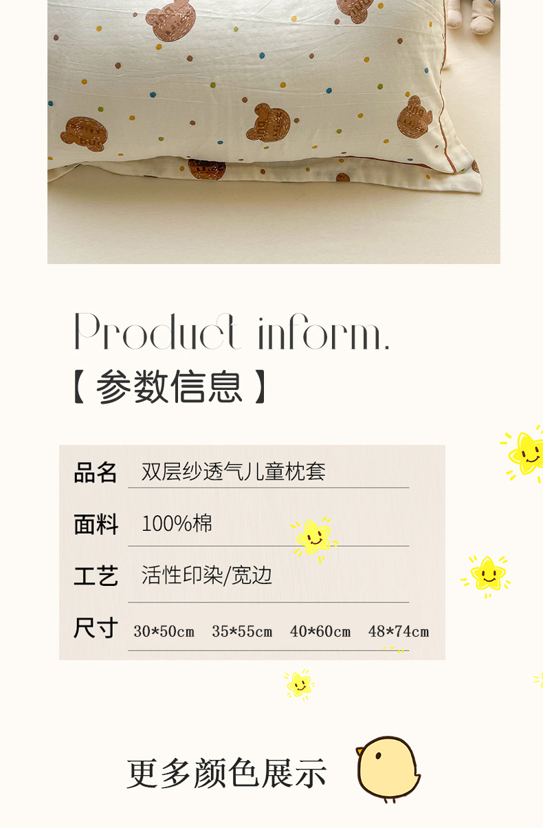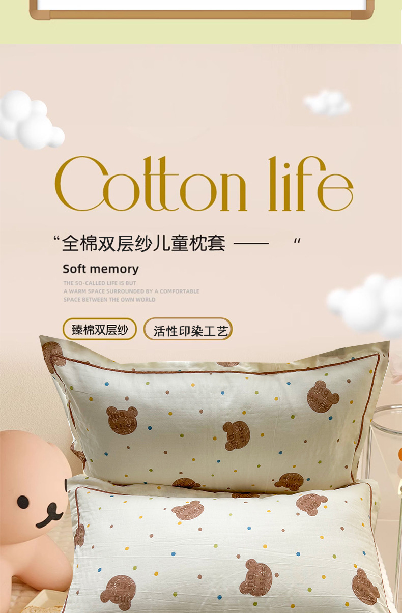 A 급 모성 및 유아용 면화 이중층 실 베갯잇 48x74cm 만화 귀여운 어린이 성인 베갯면 더블스토어 가기