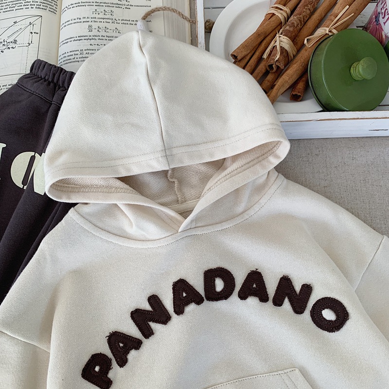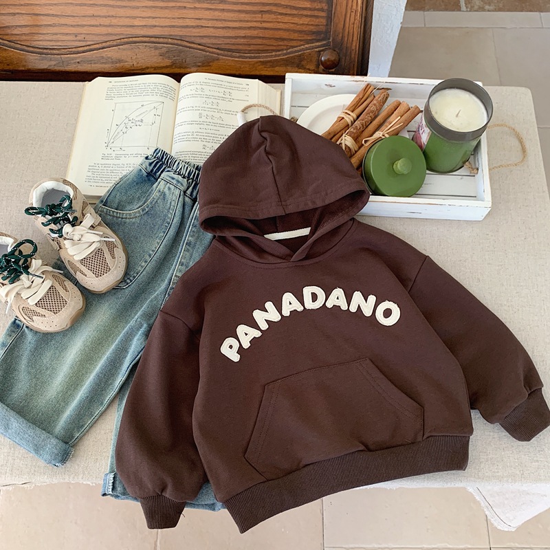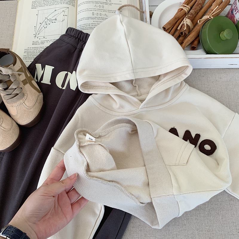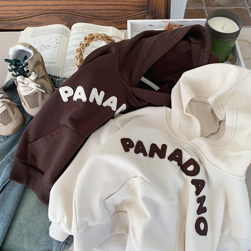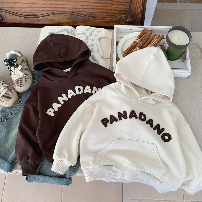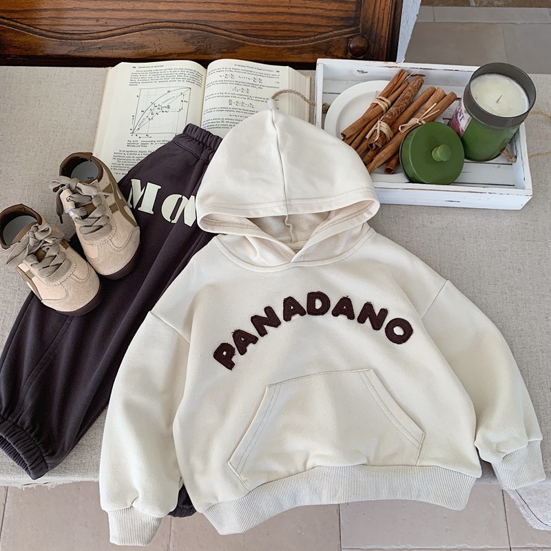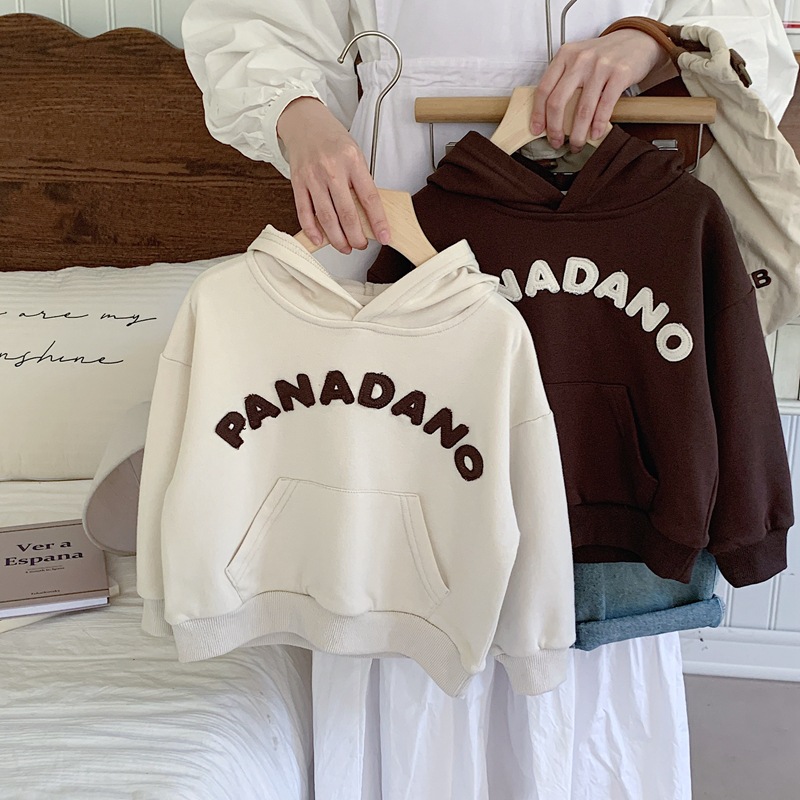 소년 알파벳 후드 티셔츠 2025 봄, 가을 소년 일본식 잘 생긴 후드 루즈 어린이 베이지 탑 스트리트
