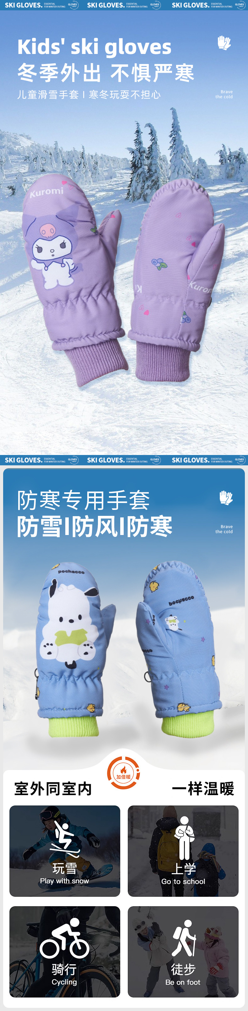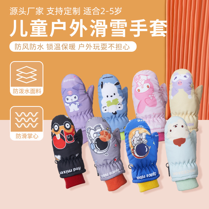 만화 어린이 기모 스키 장갑 2-5 세 아기 야외 따뜻한 장갑 두껍게 미끄럼 방지 어린이 장갑스토어 가기