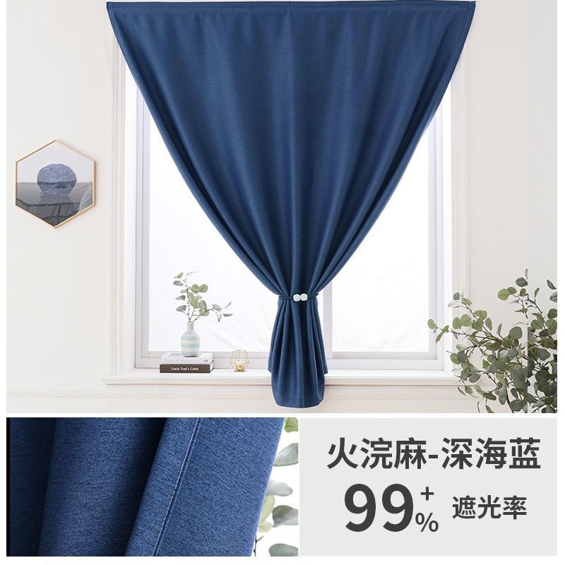 중국 커튼 펀치 무료 설치 전체 음영 벨크로 두꺼운 면 대마 커튼 그늘 침실 발코니 렌탈 룸