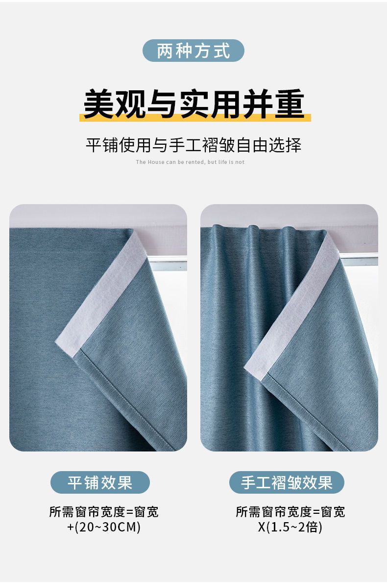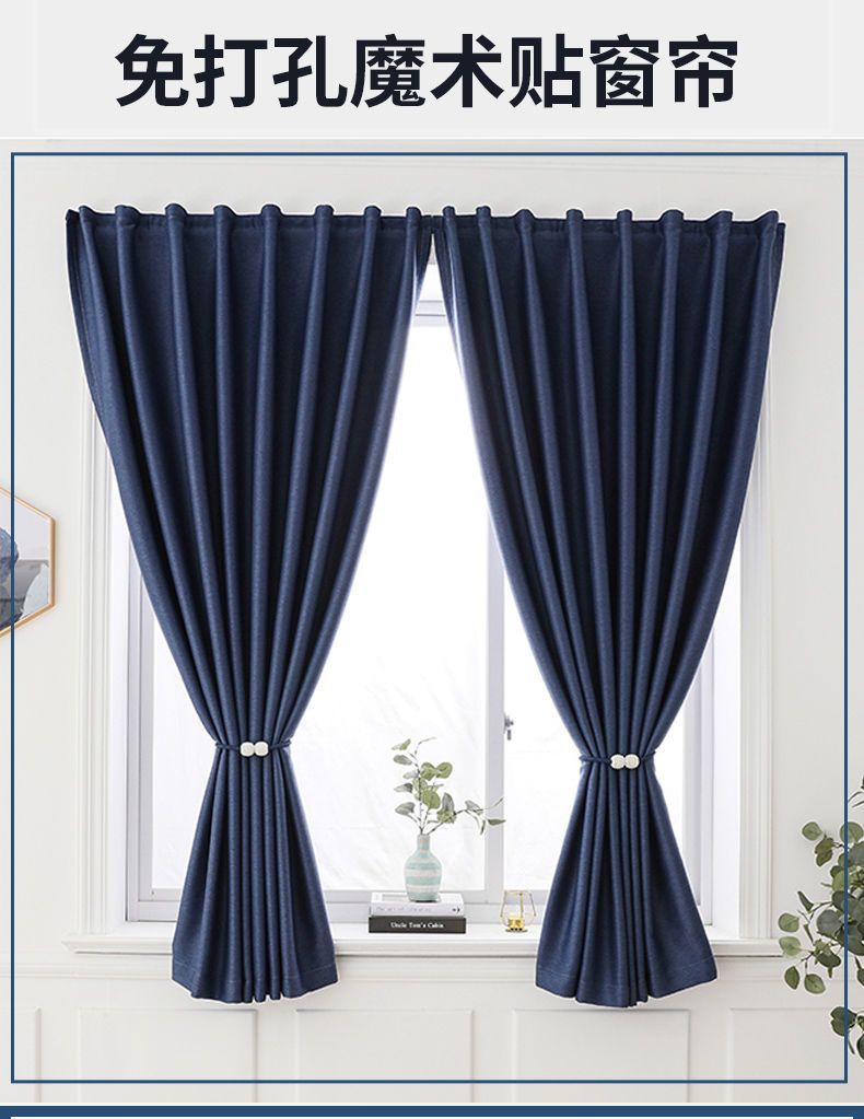 중국 커튼 펀치 무료 설치 전체 음영 벨크로 두꺼운 면 대마 커튼 그늘 침실 발코니 렌탈 룸스토어 가기