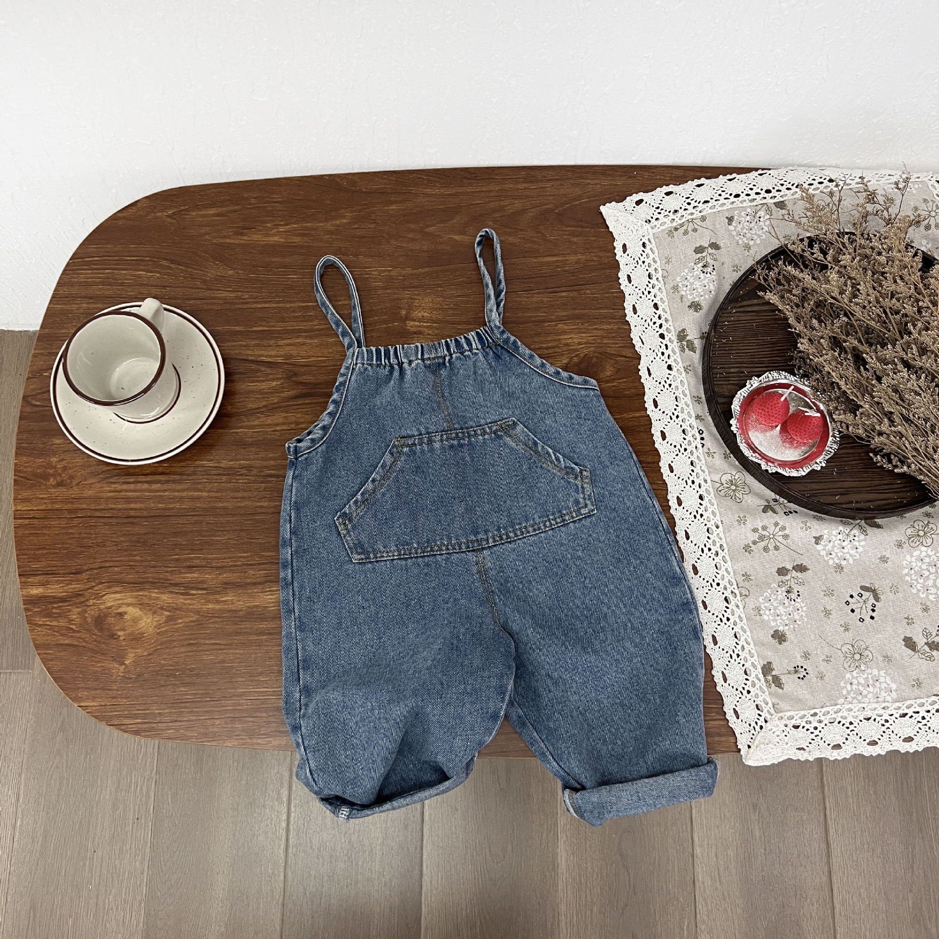 2024 년 초 가을 한국 스타일 Ins 남녀 서스펜더 점프 슈트 등반 바지 느슨한 캐주얼 긴 소매 복장