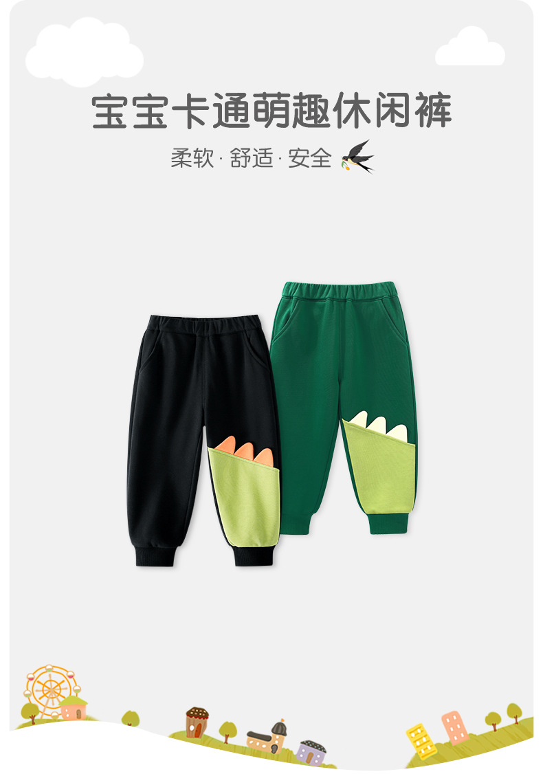 Duomengdou 소년 바지 어린이 봄과 가을 공룡 캐주얼 바지 아기의 초가을 바지 어린이 다리 바지 GEB