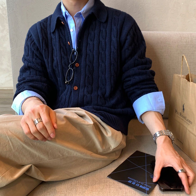 MYQ 더피 잘 생긴 캐주얼 셔츠 남자의 가을 느슨한 긴팔 셔츠 한국 유행 하이 엔드 DK 유니폼 인테리어스토어 가기