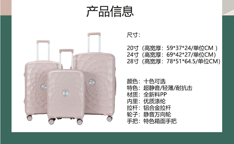 대외 무역 PP 암호 유니버설 휠 수하물 3 종 세트 여행 탑승 상자 확장 대용량 풀로드 수하물