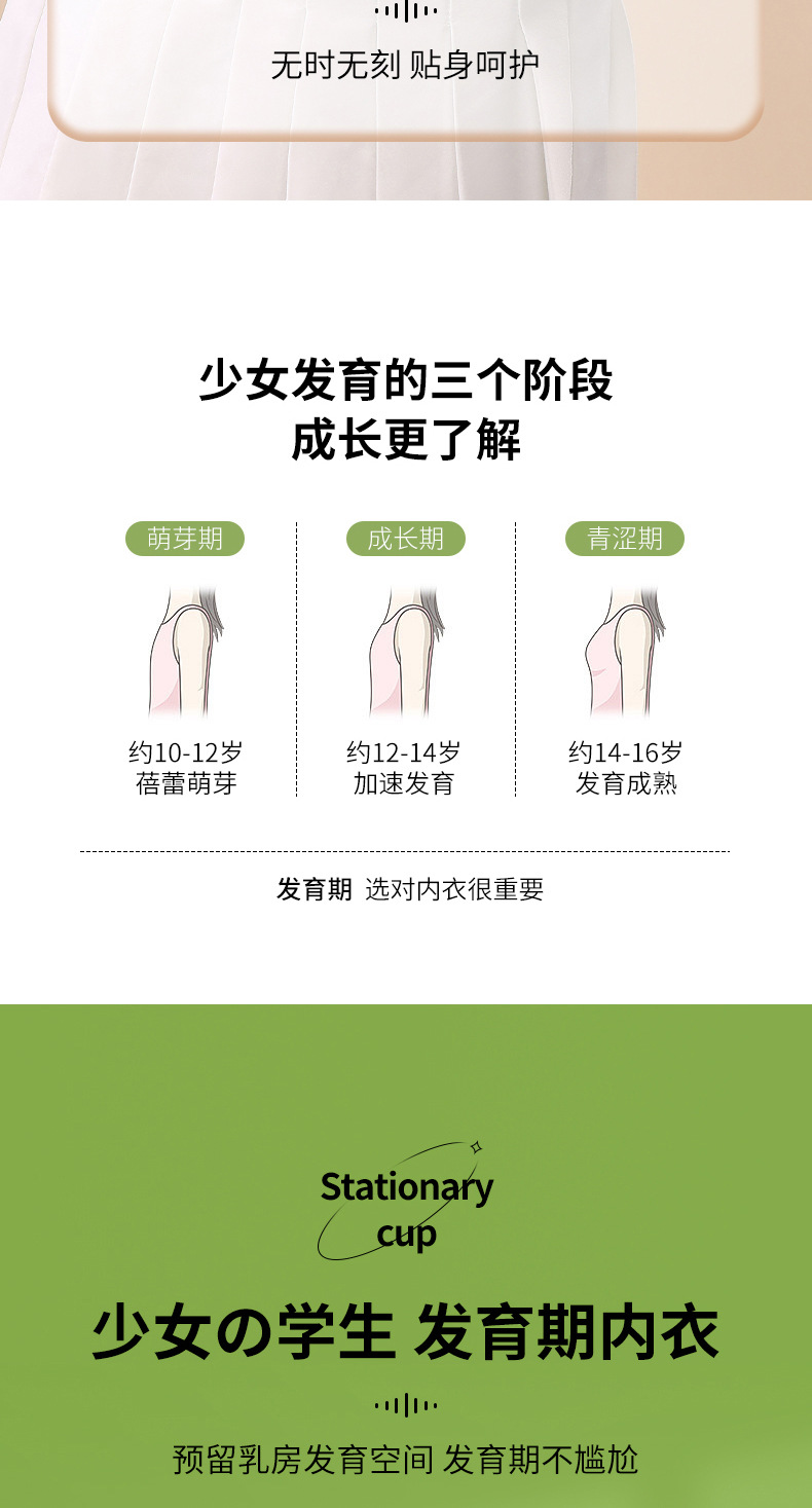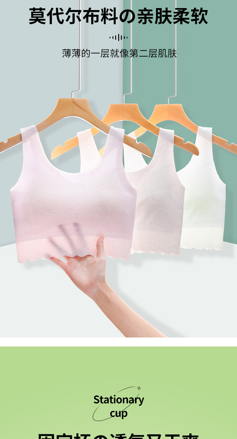 중학생 2, 3단계, 고등학생용 무봉제 속옷, 10~18세 여아 발달기 고정컵 브라스토어 가기