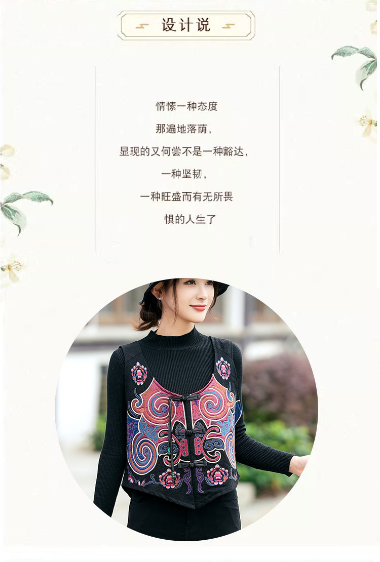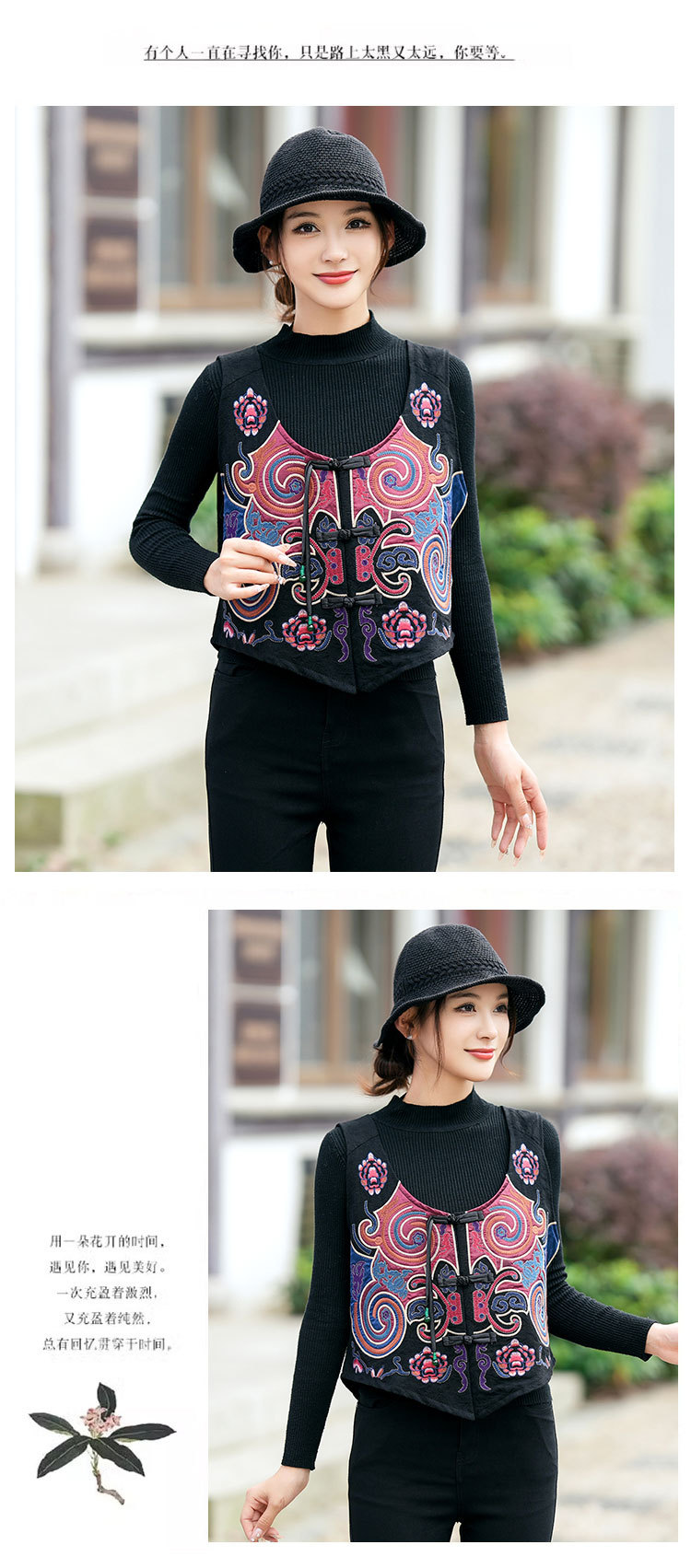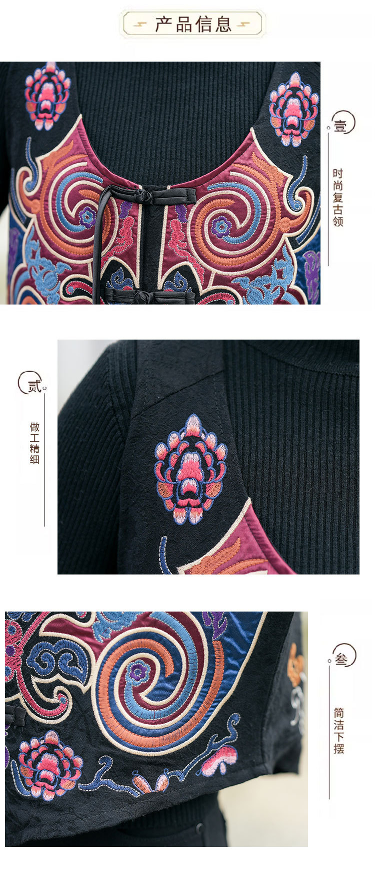 가을과 겨울 새로운 빈티지 예술적 민족 스타일 민소매 조끼 무거운 산업 자수 수동 버클 자수 국가 스타일 조끼스토어 가기
