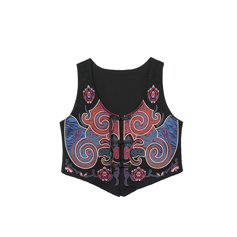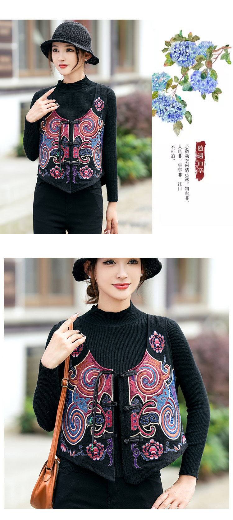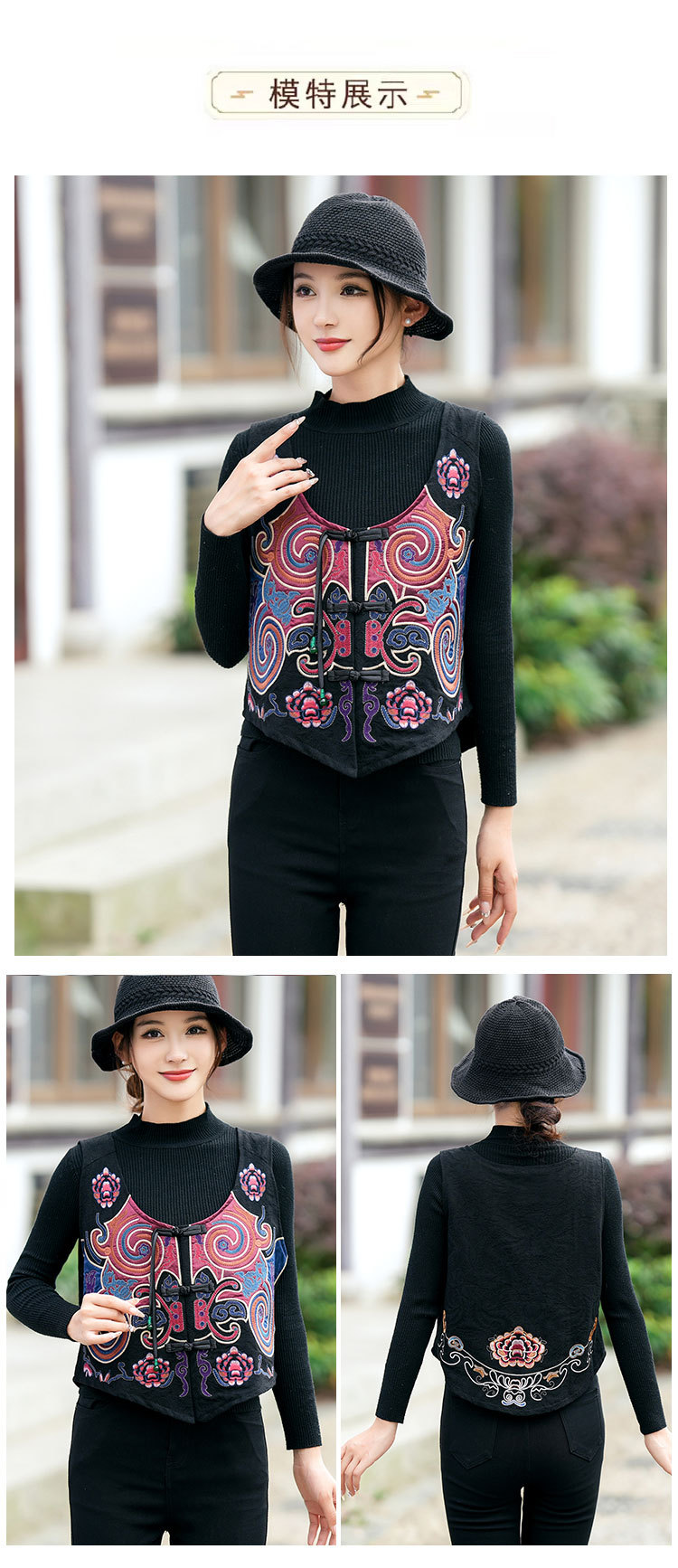가을과 겨울 새로운 빈티지 예술적 민족 스타일 민소매 조끼 무거운 산업 자수 수동 버클 자수 국가 스타일 조끼스토어 가기