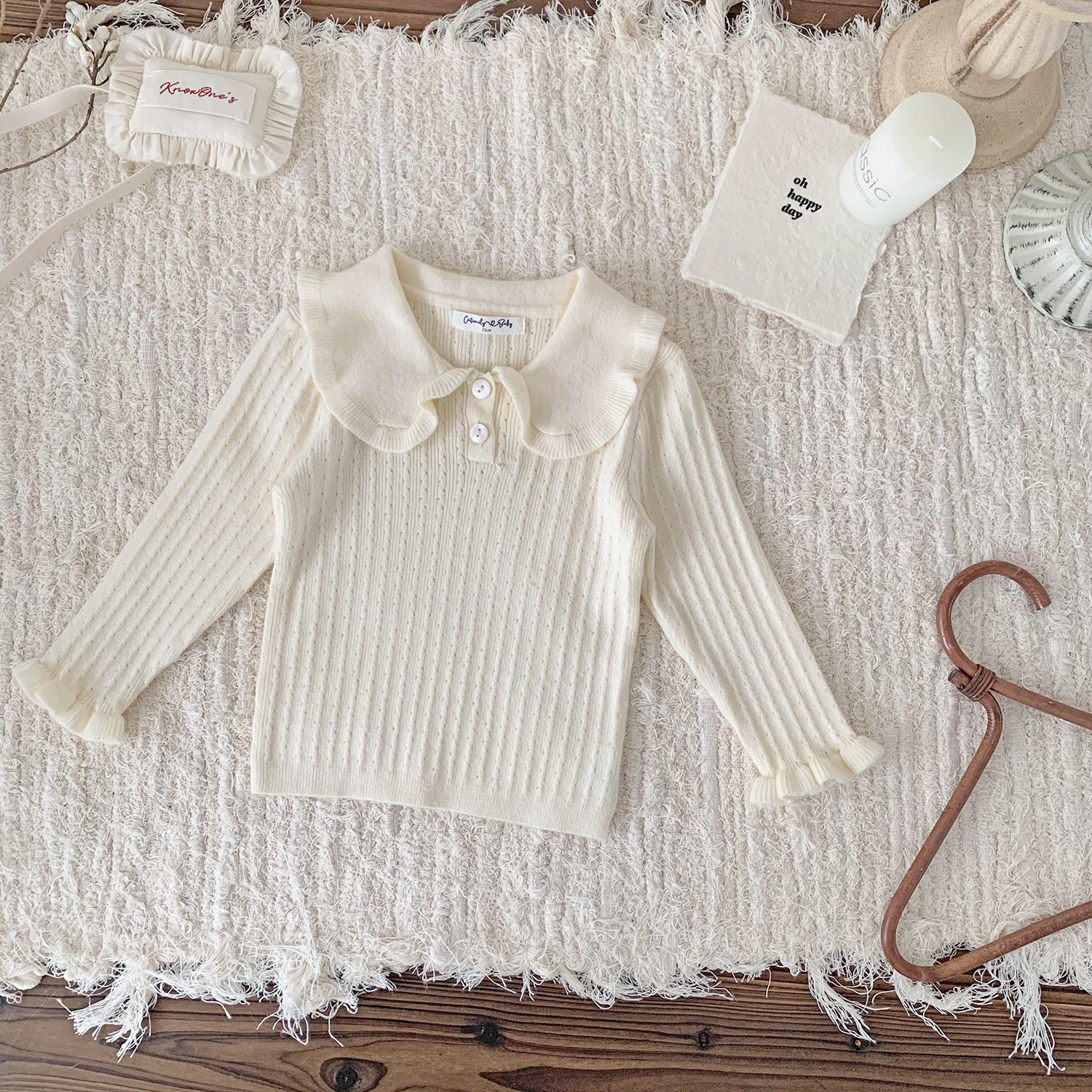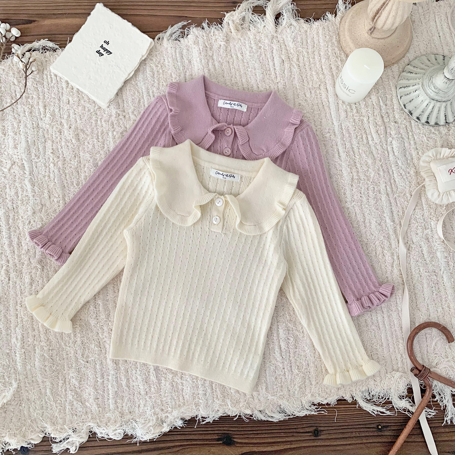 Cutemily Girl's Children's Wear 가을 옷깃 니트 베이스 셔츠 여성의 보물 구덩이 인형 레이스 풀오버 니트 셔츠스토어 가기