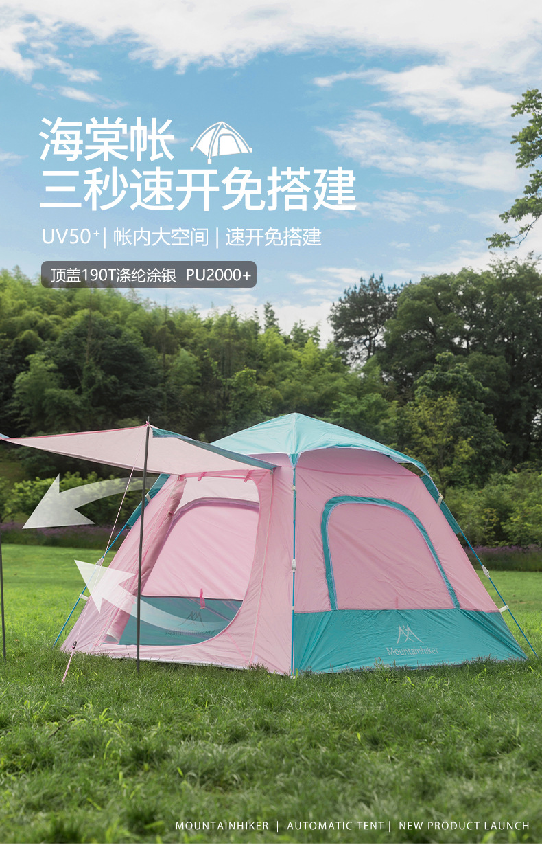 베고니아 텐트 캠핑하는 산 고객 방풍 방직 빠른 오프닝 작은 텐트 자동 텐트 공원 텐트 비치 텐트