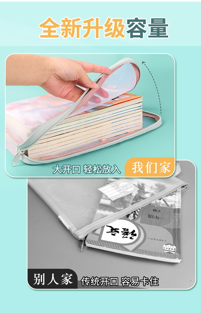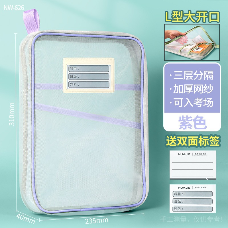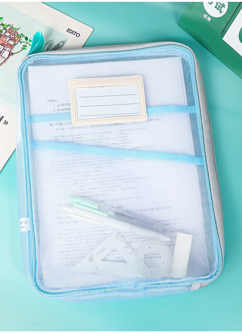 L자형 대용량 책 숙제 보관 가방 지퍼가 달린 과목 학생 분류 다층 A4 파일 투명 시험지스토어 가기