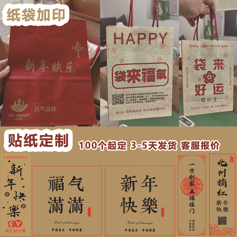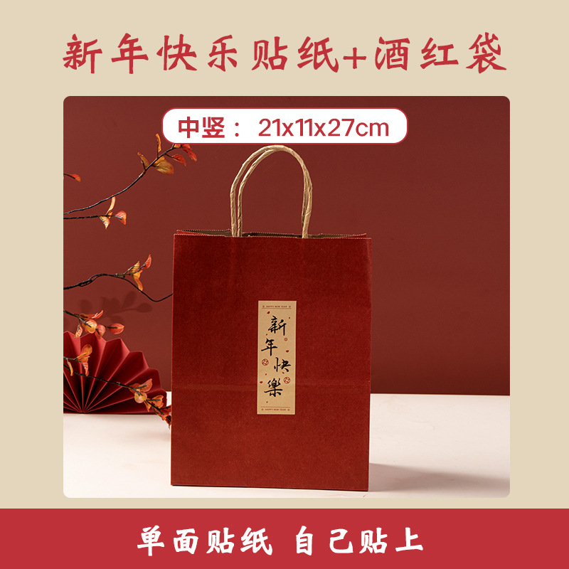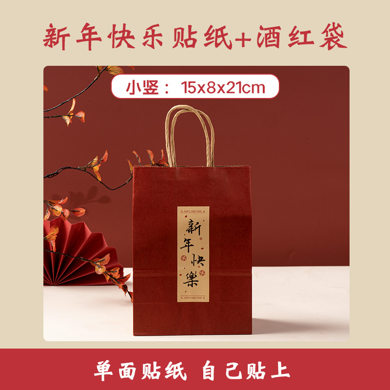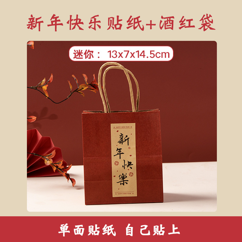 • 미니 와인 레드 가방 + 새해 스티커(한쪽은 직접 붙이세요), 크라프트지, 미니 13x7x14.5(왕라오지 캔 2개 수용 가능)