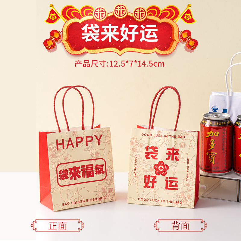 • 미니-2026 가방은 행운을 가져다줍니다, 크라프트지, 미니 13x7x14.5 (왕라오지 캔 2개 수납 가능)