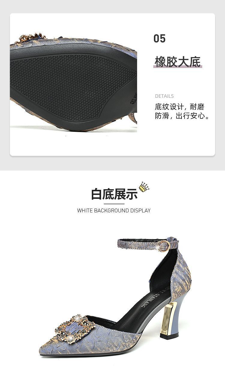 프랑스 2024 새로운 유럽 및 미국 하이힐 얕은 입 싱글 레이어 신발 여성용 미드 힐 포인팅 두꺼운 전문 플러스 사이즈 작업 신발스토어 가기