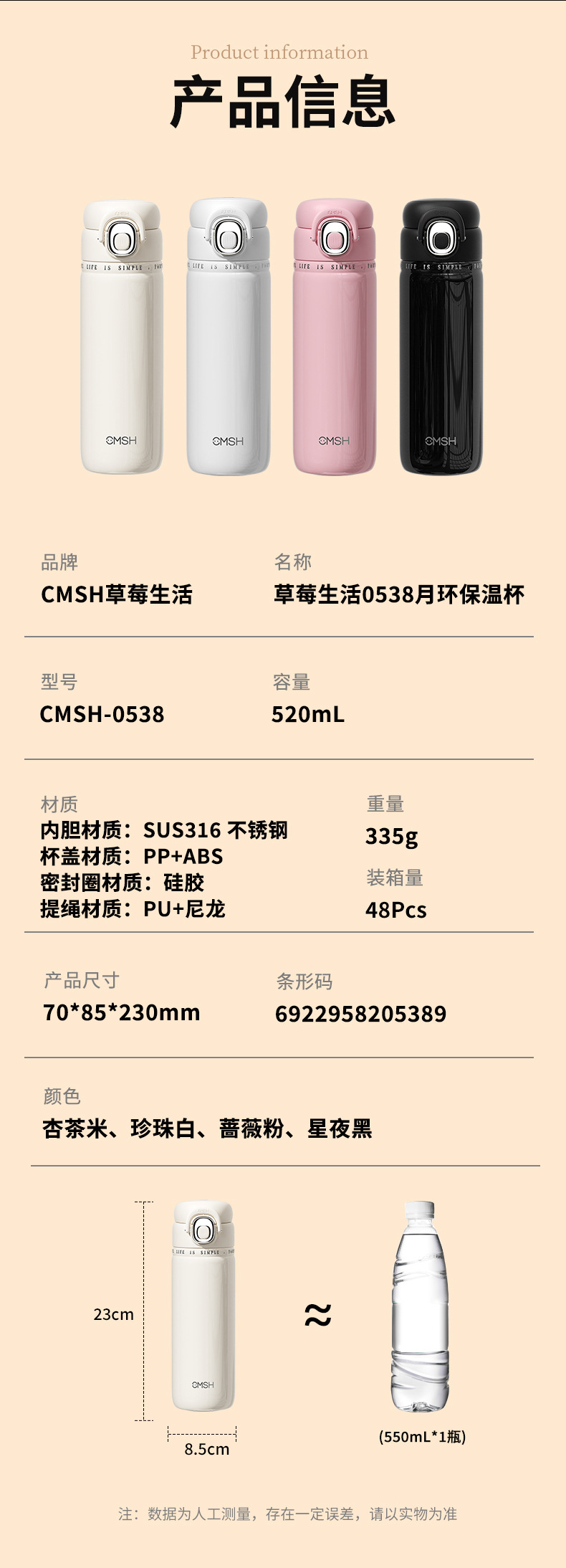 딸기 라이프 보온병 컵 여성용 물컵 고급스러운 2024 새로운 대용량 316 스테인레스 스틸 휴대용 텀블러